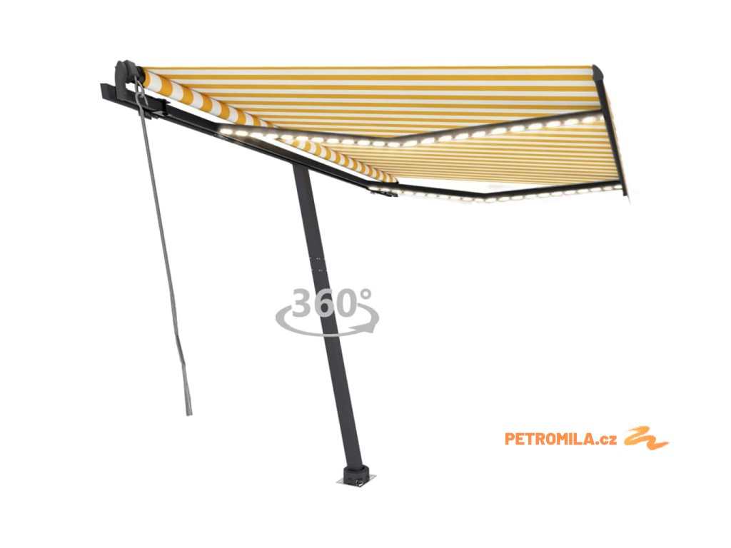 Automatická markýza LED a senzor větru 350 x 250 cm žlutá/bílá