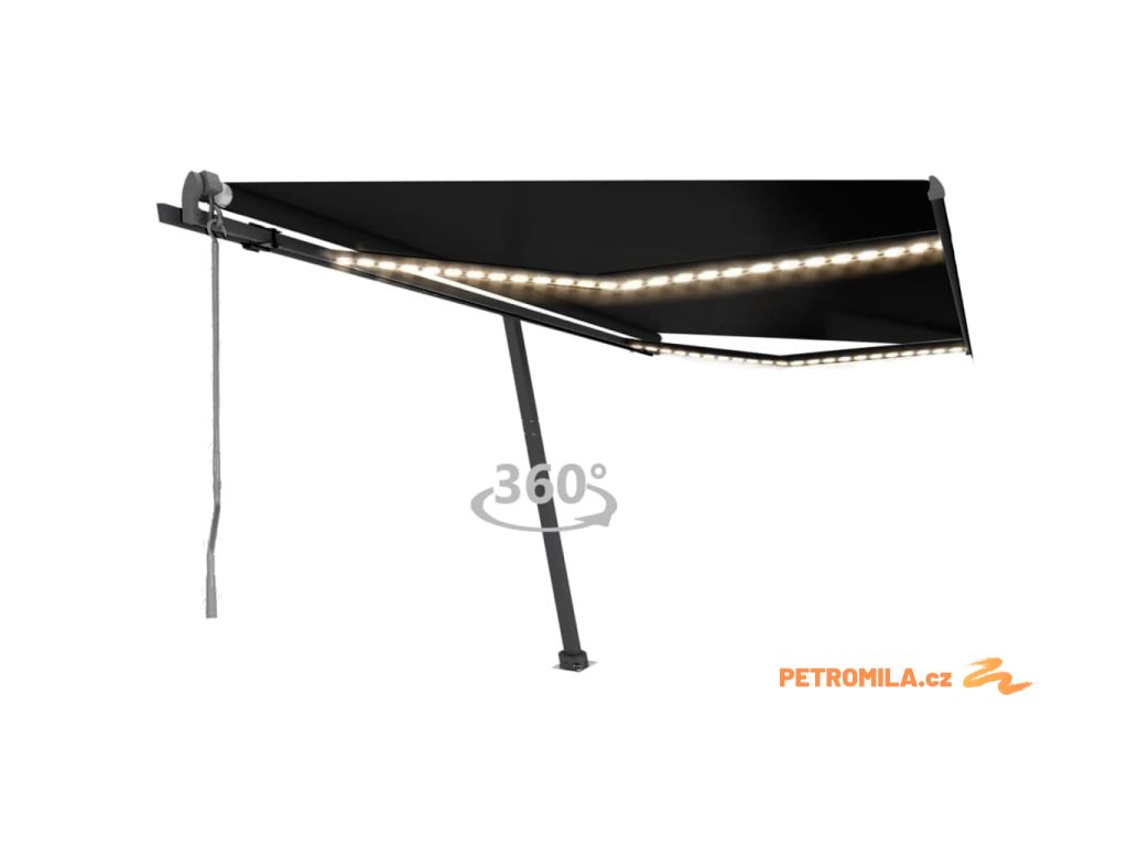 Automatická markýza LED a senzor větru 400 x 300 cm antracitová