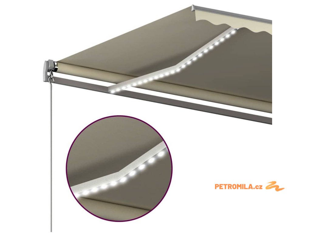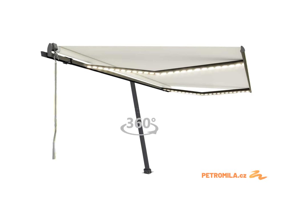 Zahradní markýza má práškově lakovaný hliníkový rám, který nerezaví, je lehký a přitom tvoří velice pevnou konstrukci. Stříška je vyrobená z polyesteru s vysokou hustotou a s PU povlakem, skvěle proto odolává vodě i UV záření. Úhel a výšku samostatně stojící markýzy si navíc můžete nastavit podle vašich momentálních potřeb. Robustní stojan lze otáčet o 360 stupňů, což vám dává maximální možnost přizpůsobení. Automatickou stříšku snadno roztáhnete a zatáhnete pomocí dálkového ovladače. K hladkému ovládání vám poslouží také dlouhá ruční klika. Markýza je rovněž opatřená senzorem větru, který ji za větrných dnů automaticky zavře. LED světla vám zase v noci poskytnou energeticky úsporné osvětlení.