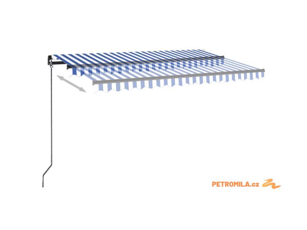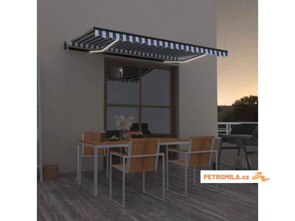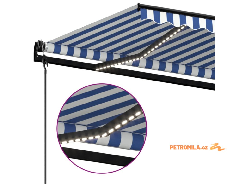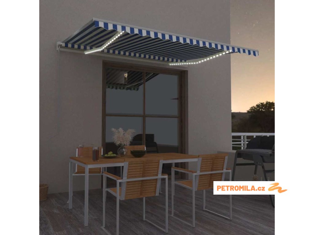 Automatická markýza LED a senzor větru 400 x 350 cm modrobílá