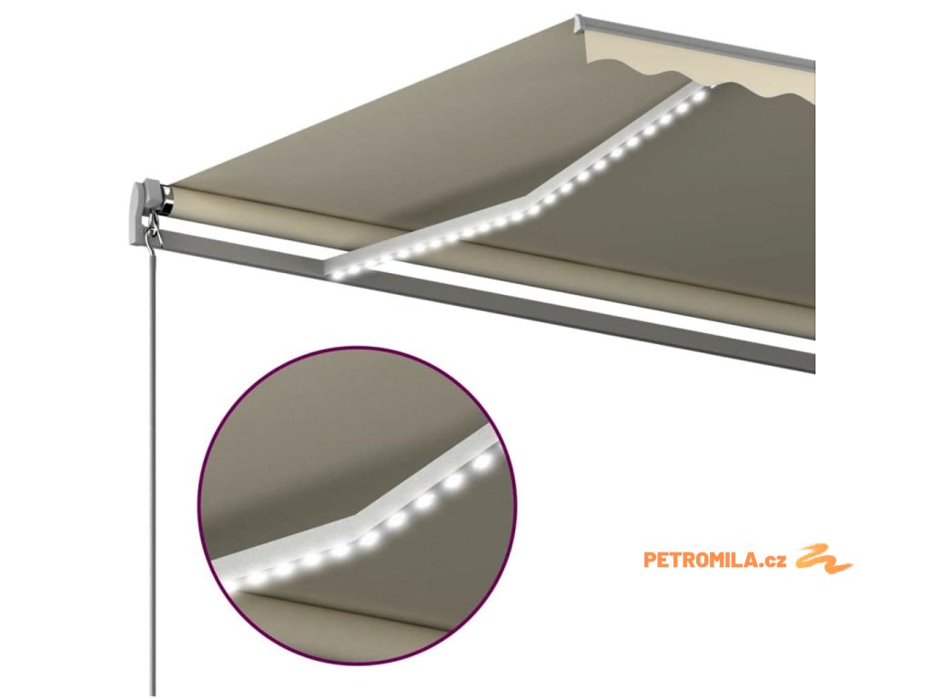 Automatická markýza LED a senzor větru 400x350 cm krémová