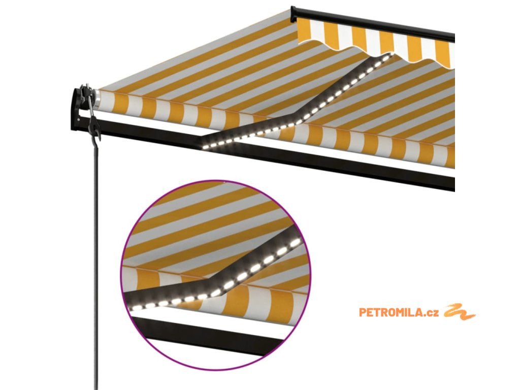 Automatická markýza LED a senzor větru 400x350 cm žlutobílá