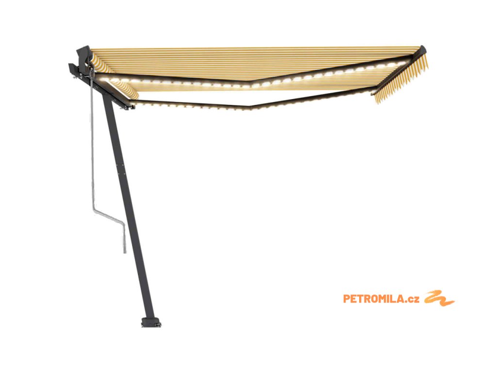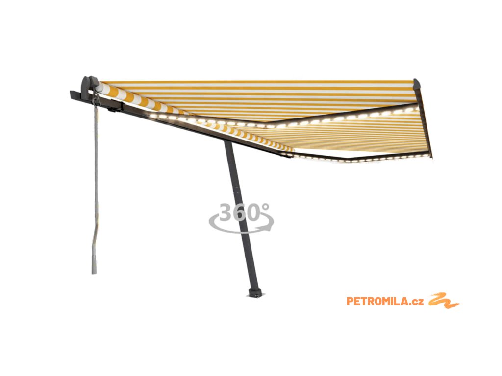Automatická markýza LED a senzor větru 400x350 cm žlutobílá