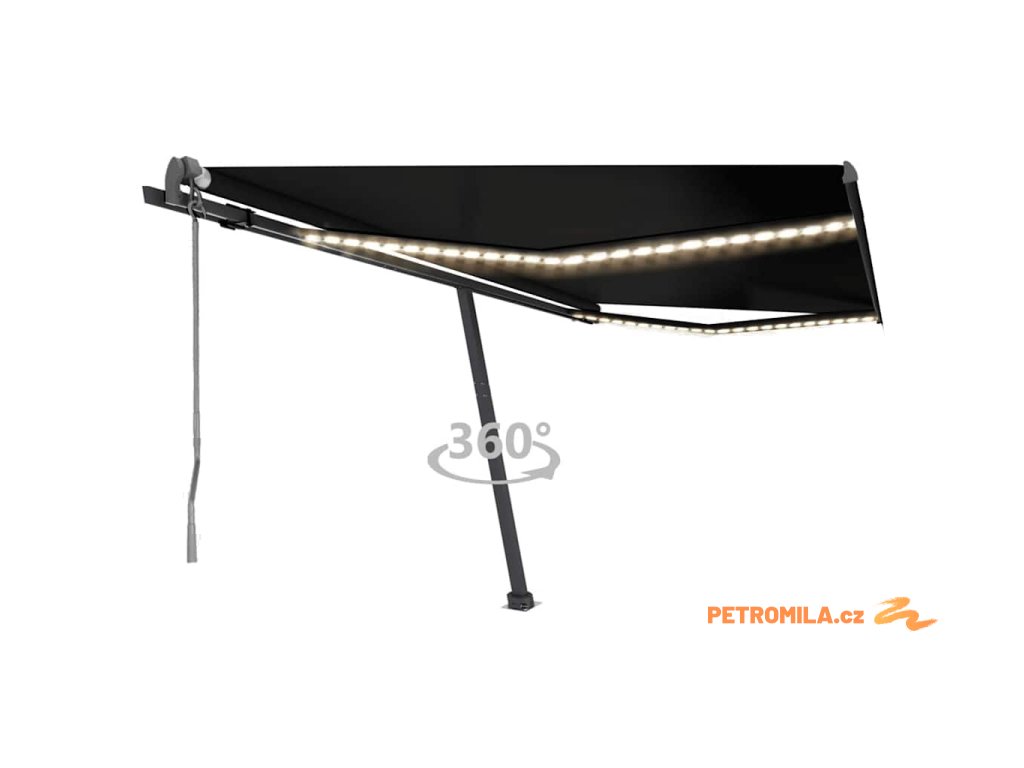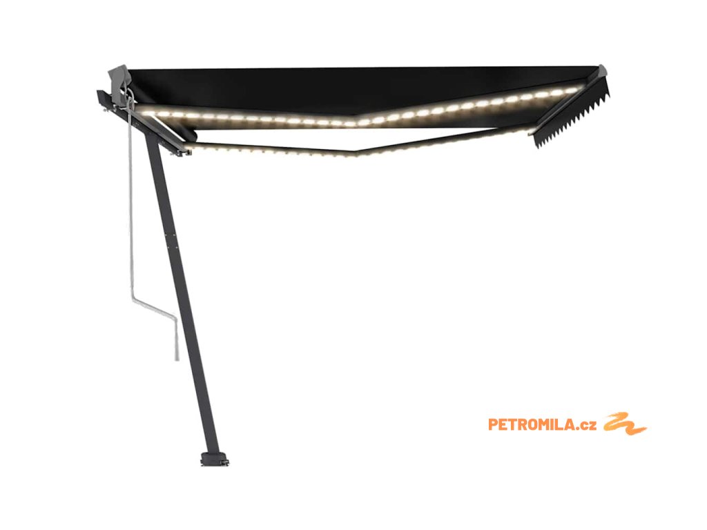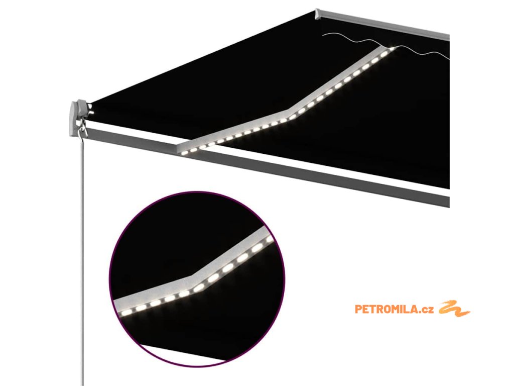 Automatická markýza LED a senzor větru 450 x 300 cm antracitová