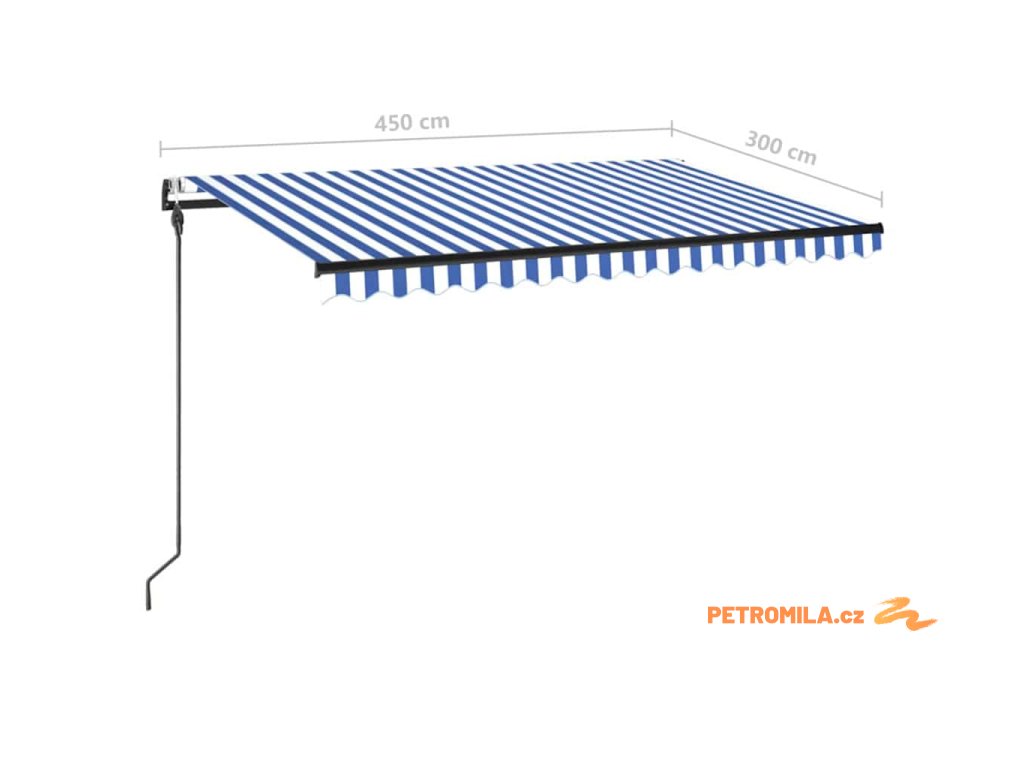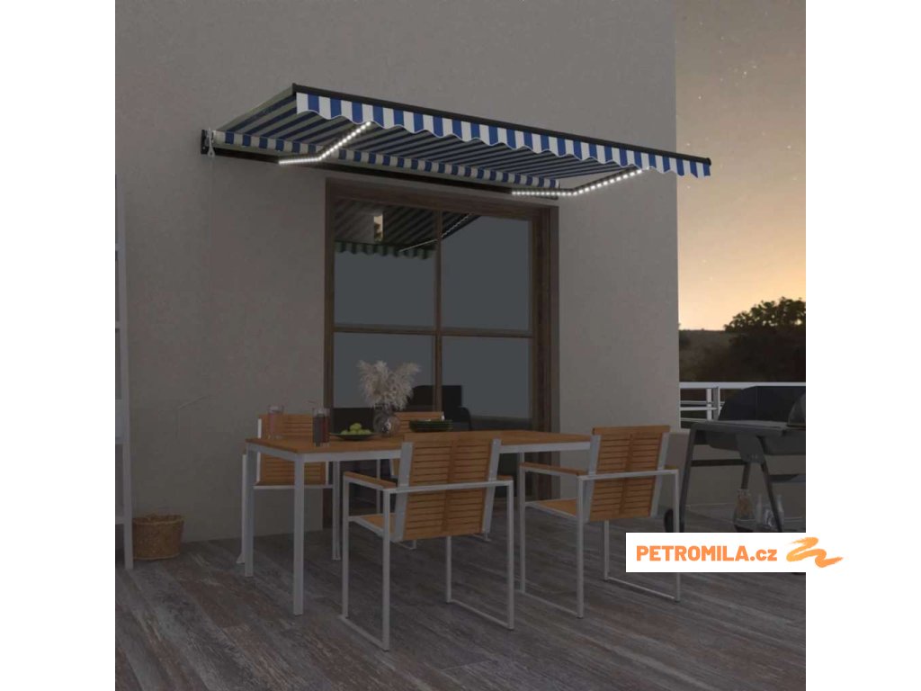Automatická markýza LED a senzor větru 450 x 300 cm modrobílá