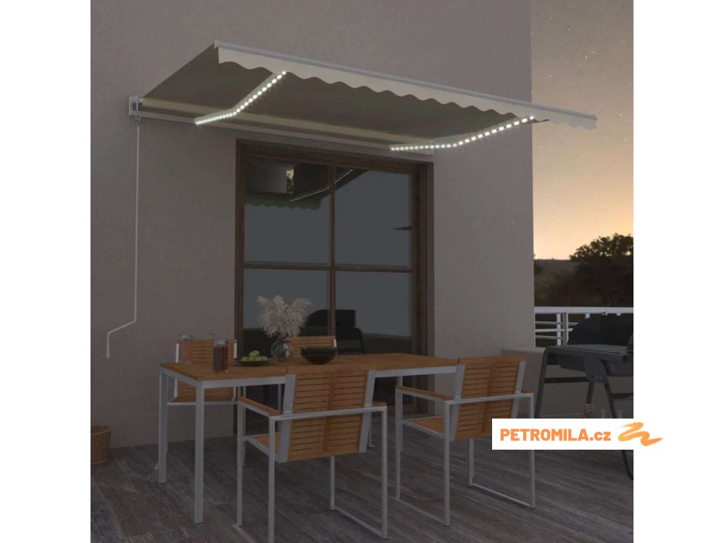 Automatická markýza LED a senzor větru 450 x 350 cm krémová
