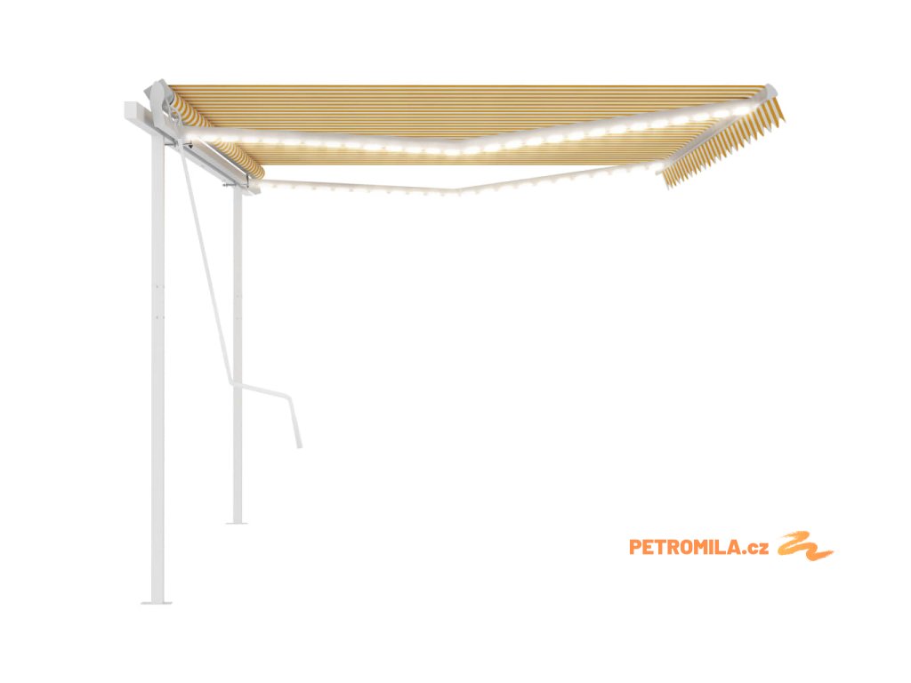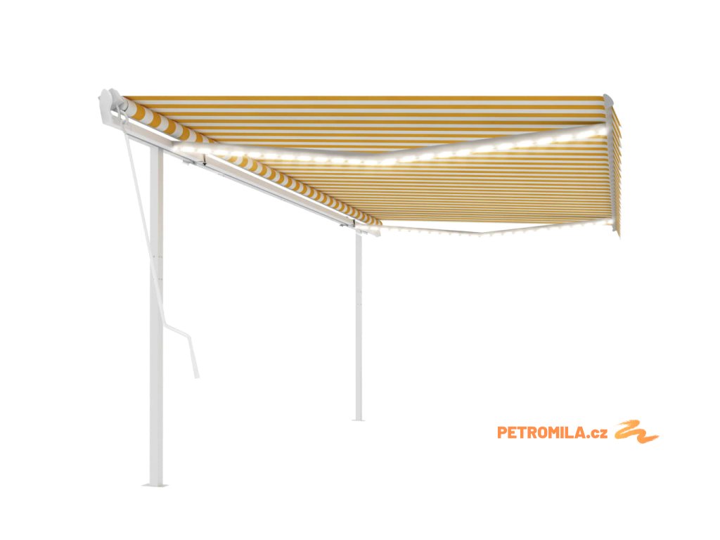 Automatická markýza LED a senzor větru 5 x 3 m žlutobílá