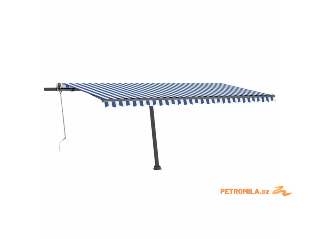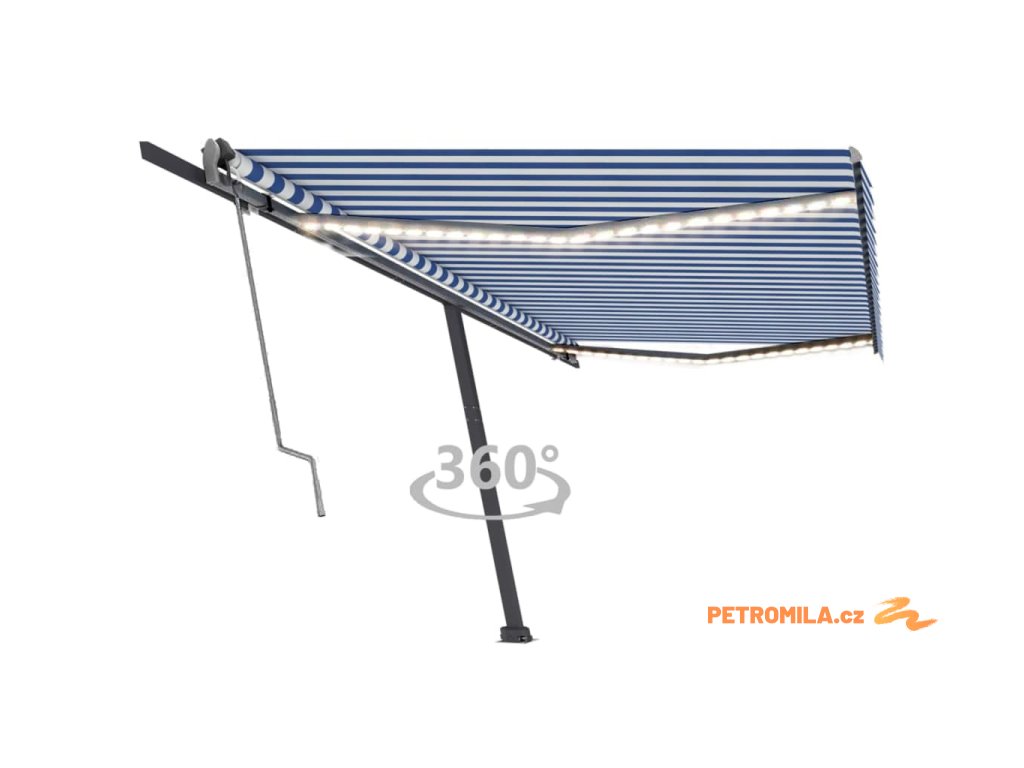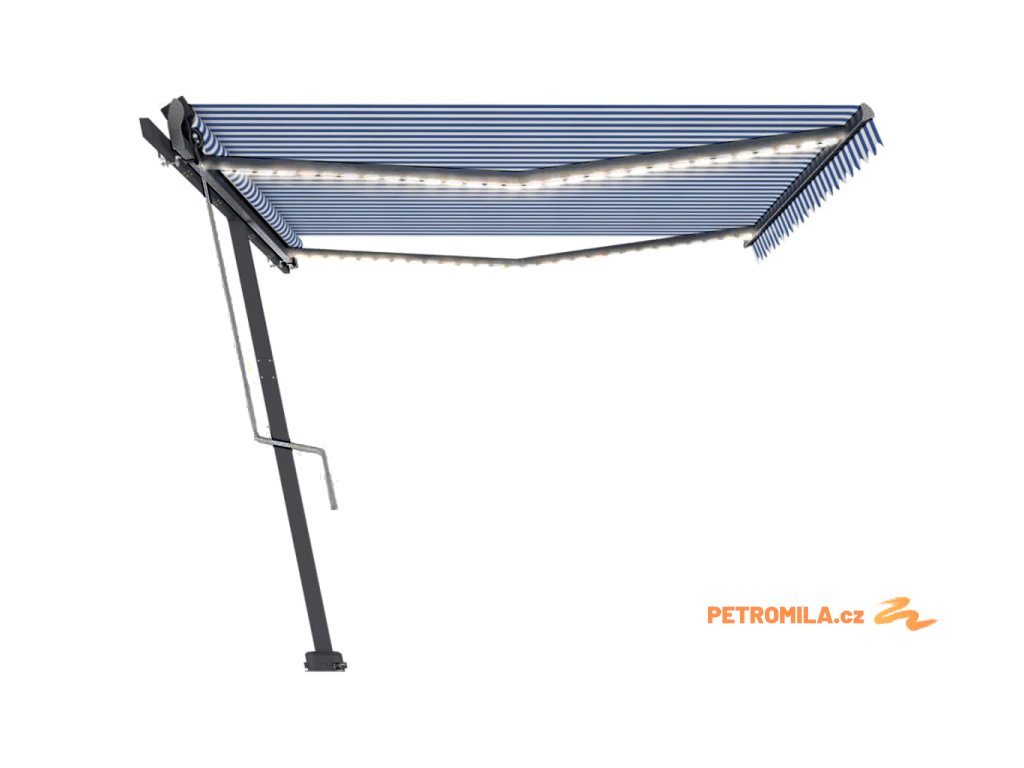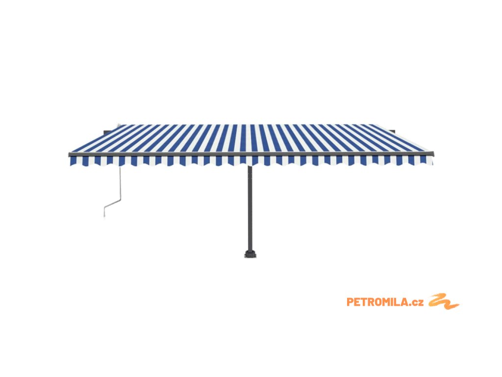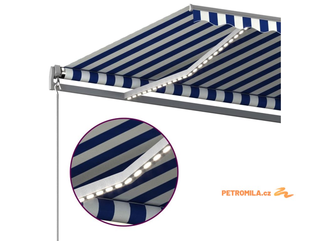 Automatická markýza LED a senzor větru 500 x 300 cm modrobílá