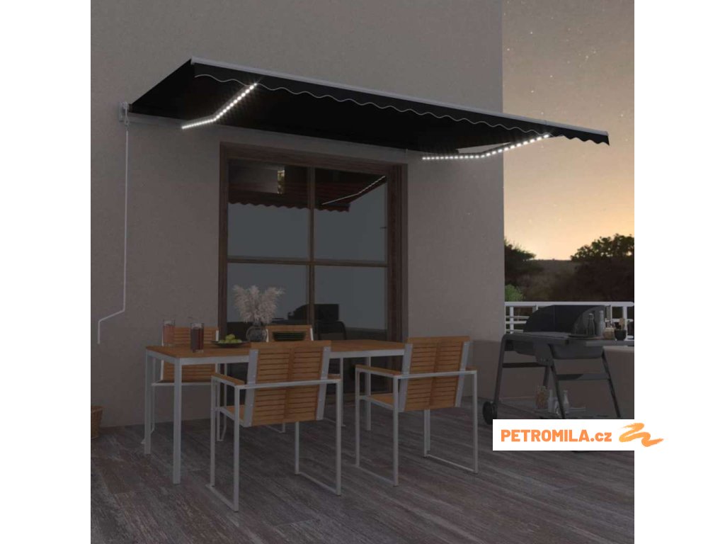 Automatická markýza LED a senzor větru 500 x 350 cm antracitová