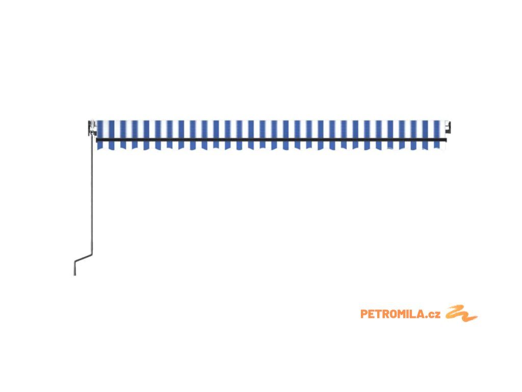 Automatická markýza LED a senzor větru 500 x 350 cm modrobílá