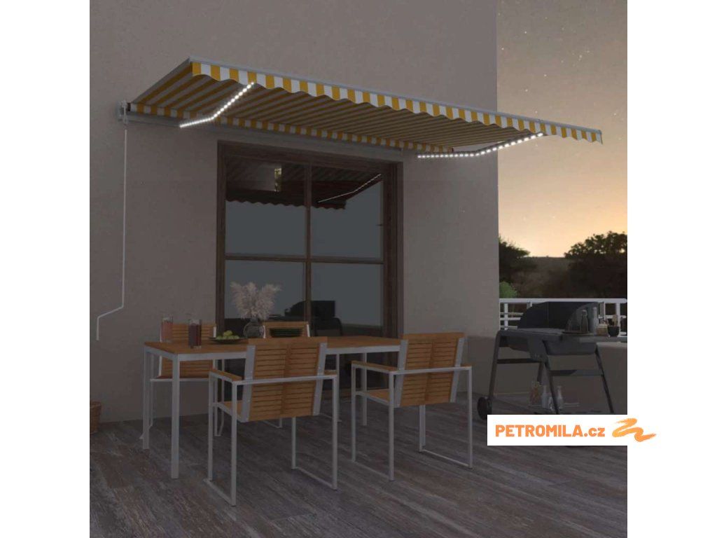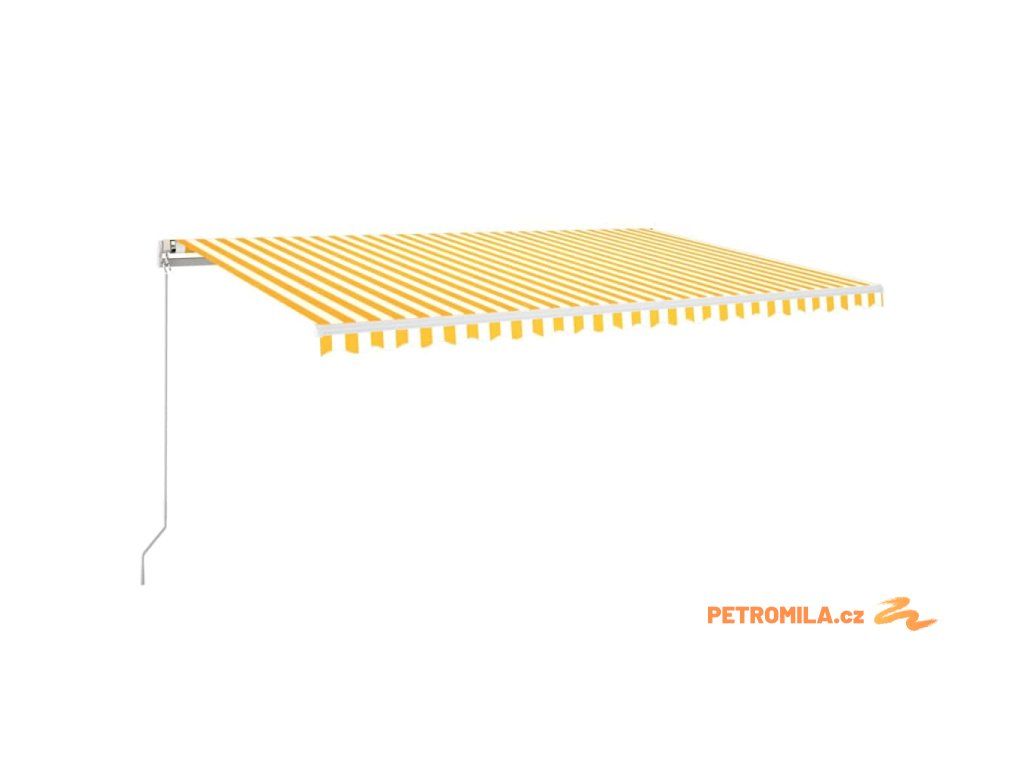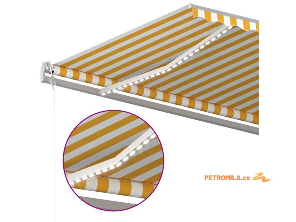 Automatická markýza LED a senzor větru 500 x 350 cm žlutá/bílá