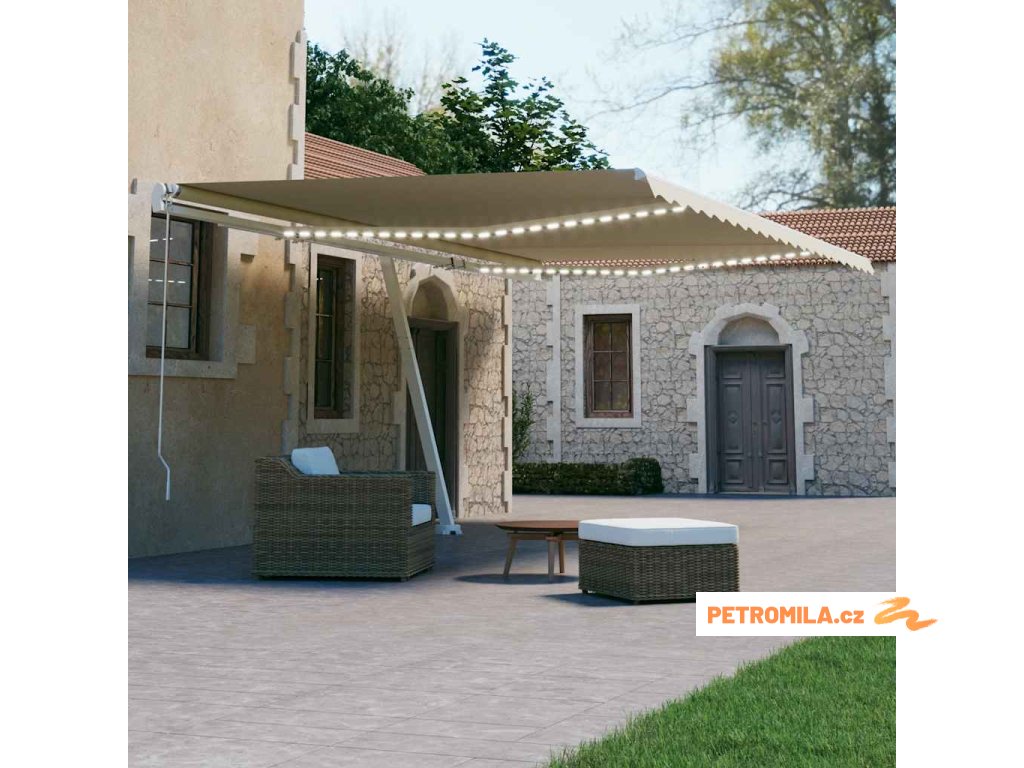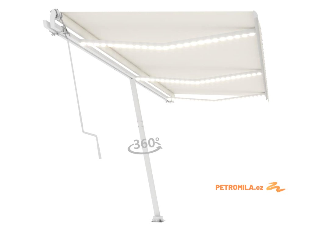Zahradní markýza má práškově lakovaný hliníkový rám, který nerezaví, je lehký a přitom tvoří velice pevnou konstrukci. Stříška je vyrobená z polyesteru s vysokou hustotou a s PU povlakem, skvěle proto odolává vodě i UV záření. Úhel a výšku samostatně stojící markýzy si navíc můžete nastavit podle vašich momentálních potřeb. Robustní stojan lze otáčet o 360 stupňů, což vám dává maximální možnost přizpůsobení. Automatickou stříšku snadno roztáhnete a zatáhnete pomocí dálkového ovladače. K hladkému ovládání vám poslouží také dlouhá ruční klika. Markýza je rovněž opatřená senzorem větru, který ji za větrných dnů automaticky zavře. LED světla vám zase v noci poskytnou energeticky úsporné osvětlení.