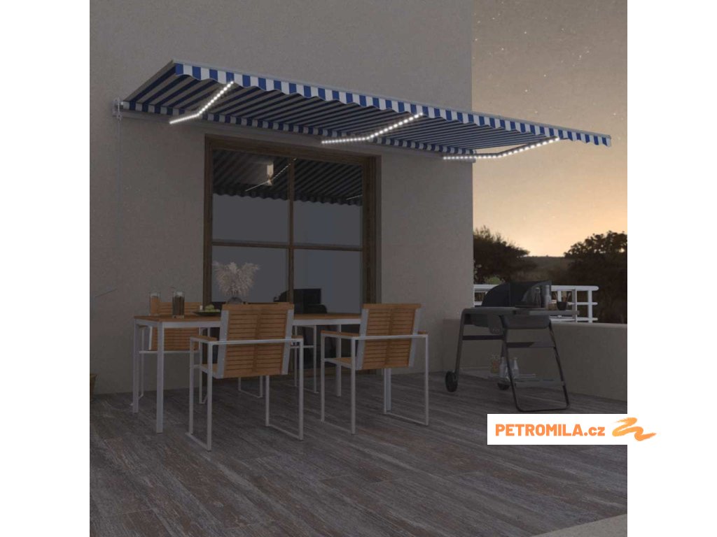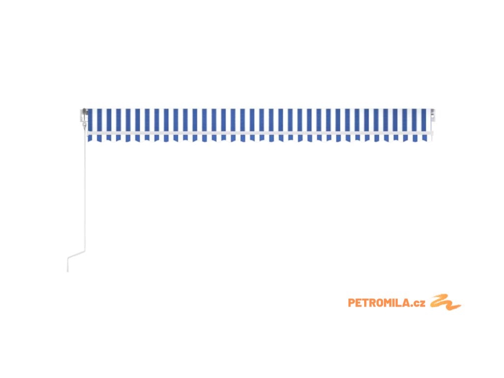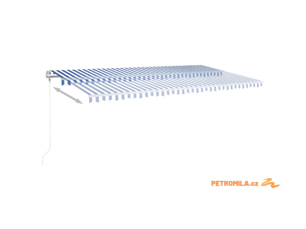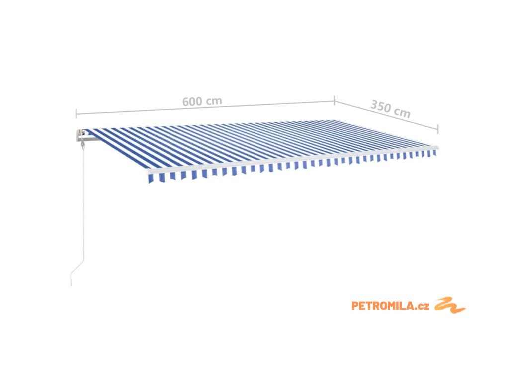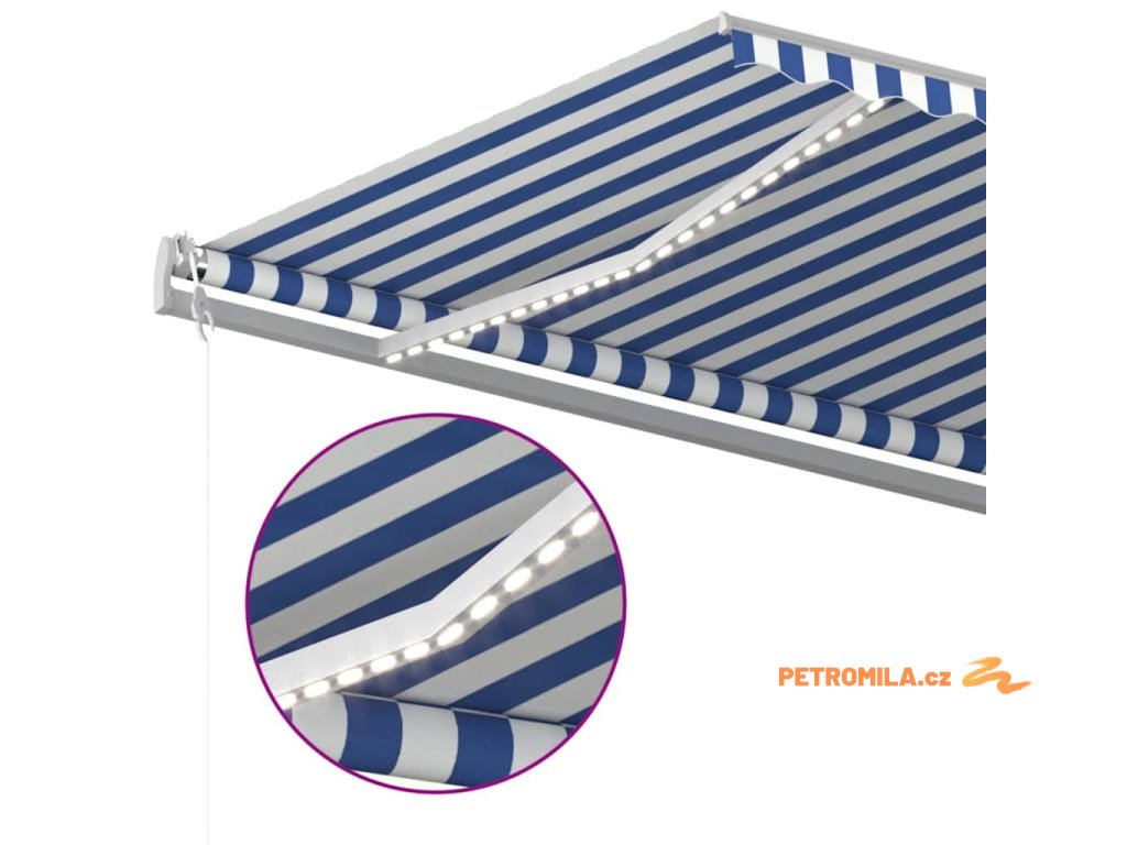 Automatická markýza LED a senzor větru 600 x 350 cm modrobílá