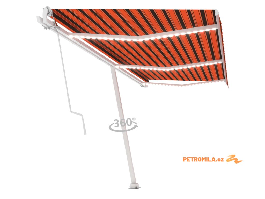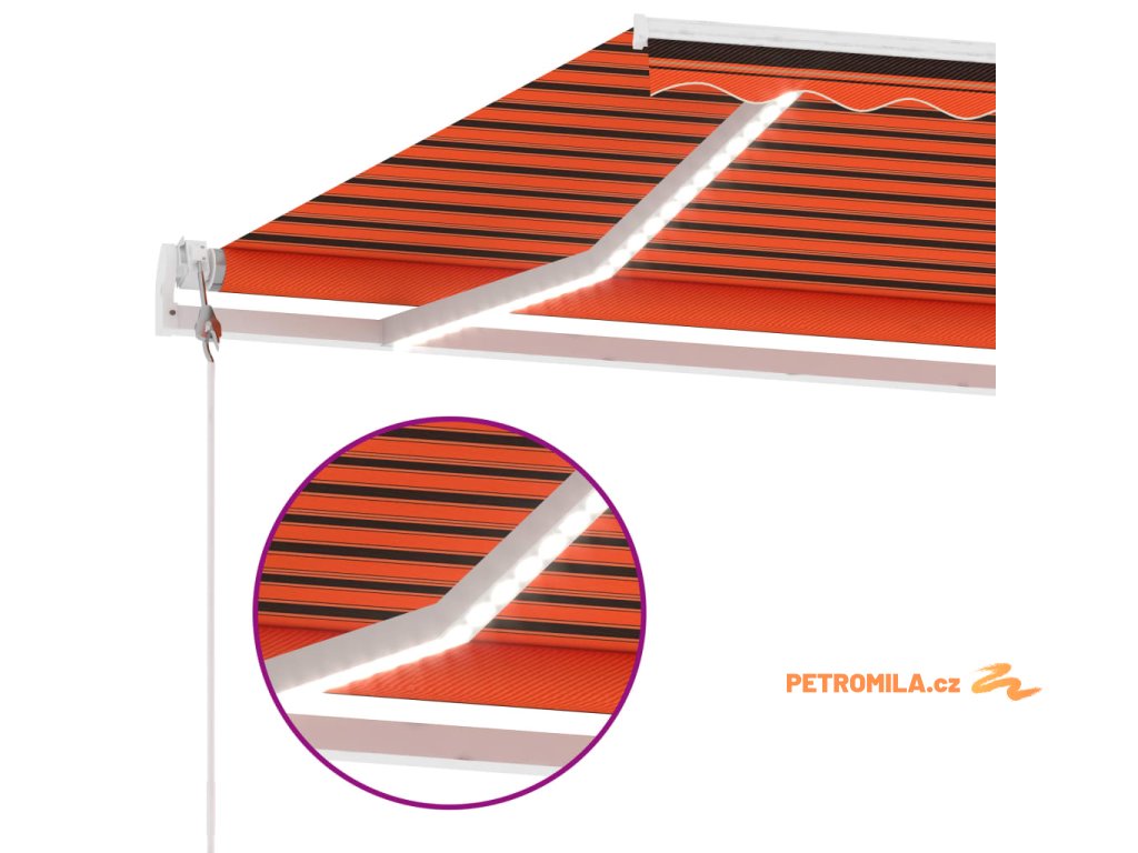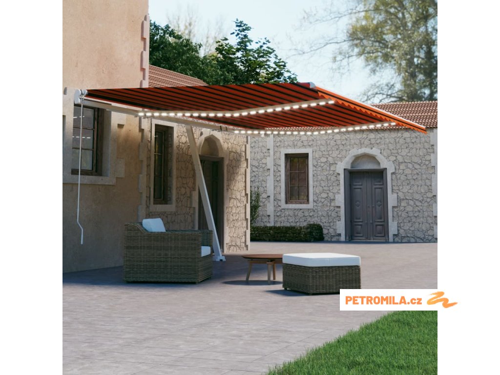 Automatická markýza LED a senzor větru 600x300 cm oranžovohnědá
