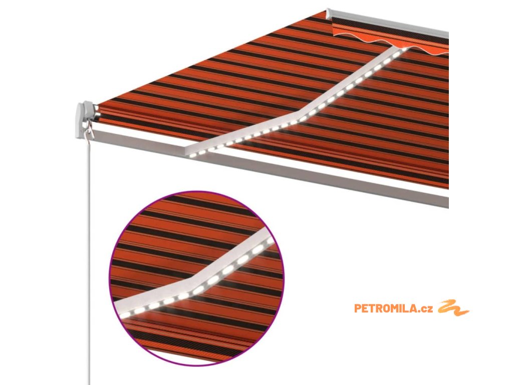 Automatická markýza LED a senzor větru 600x300 cm oranžovohnědá
