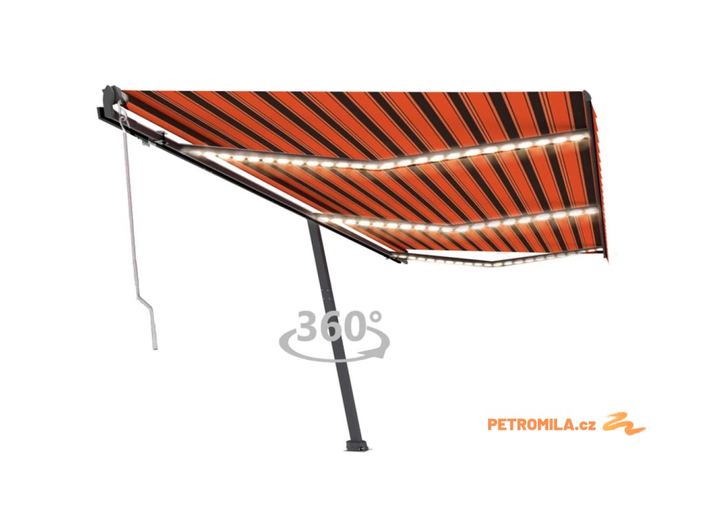 Zahradní markýza má práškově lakovaný hliníkový rám, který nerezaví, je lehký a přitom tvoří velice pevnou konstrukci. Stříška je vyrobená z polyesteru s vysokou hustotou a s PU povlakem, skvěle proto odolává vodě i UV záření. Úhel a výšku samostatně stojící markýzy si navíc můžete nastavit podle vašich momentálních potřeb. Robustní stojan lze otáčet o 360 stupňů, což vám dává maximální možnost přizpůsobení. Automatickou stříšku snadno roztáhnete a zatáhnete pomocí dálkového ovladače. K hladkému ovládání vám poslouží také dlouhá ruční klika. Markýza je rovněž opatřená senzorem větru, který ji za větrných dnů automaticky zavře. LED světla vám zase v noci poskytnou energeticky úsporné osvětlení.