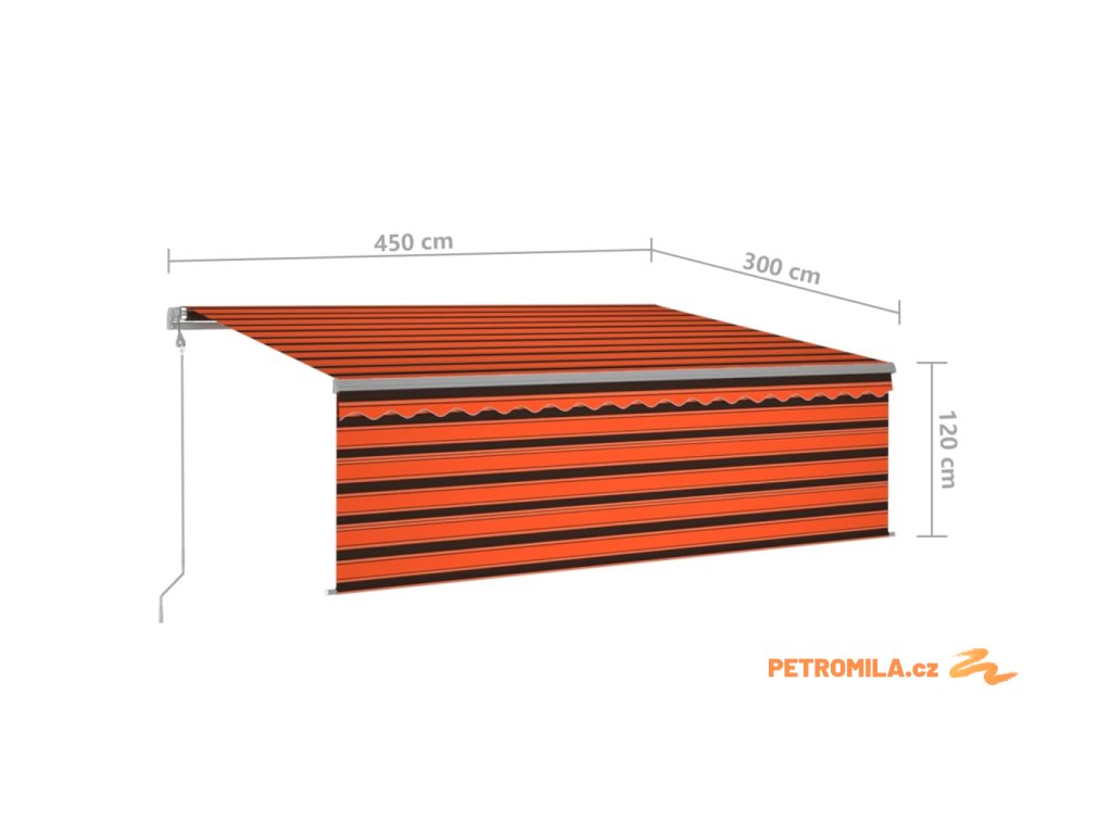 Automatická markýza roleta LED a senzor větru 4,5x3 m oranžová