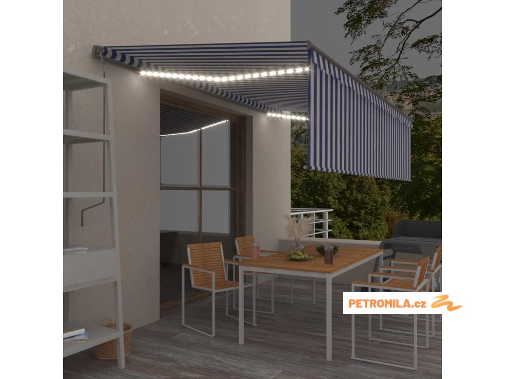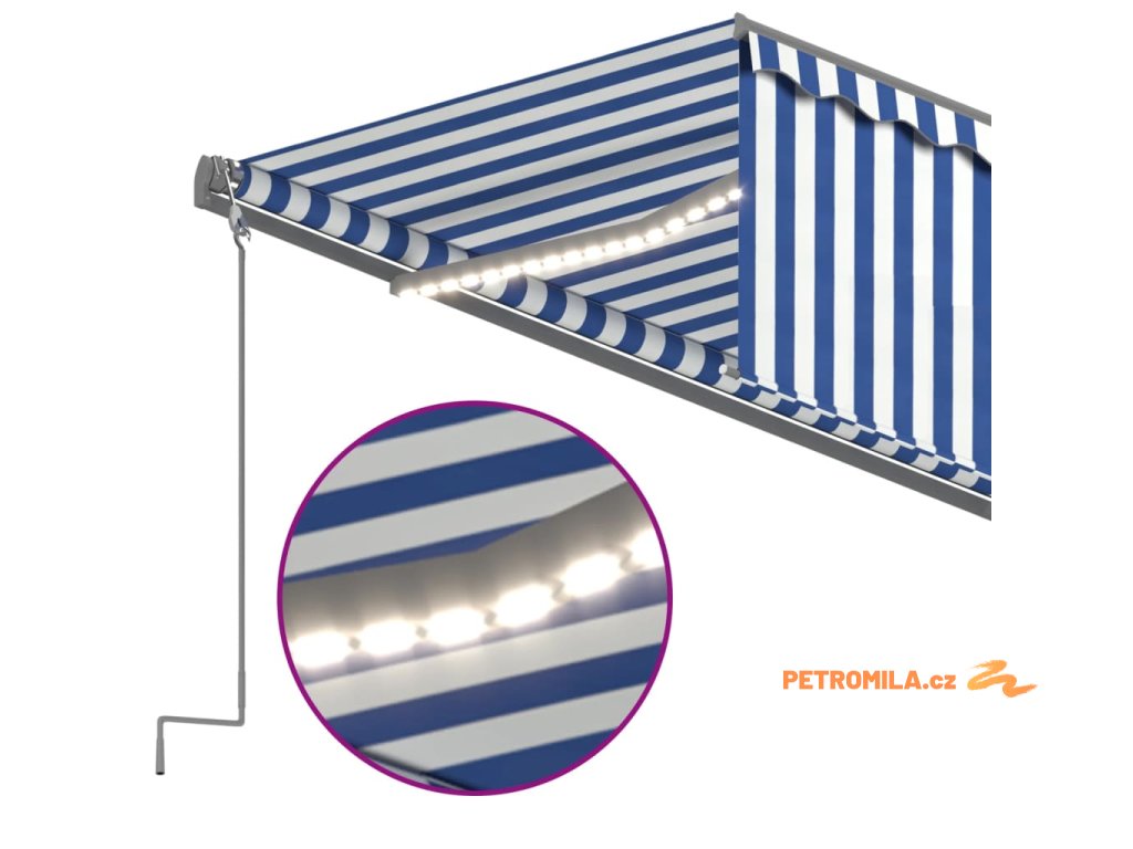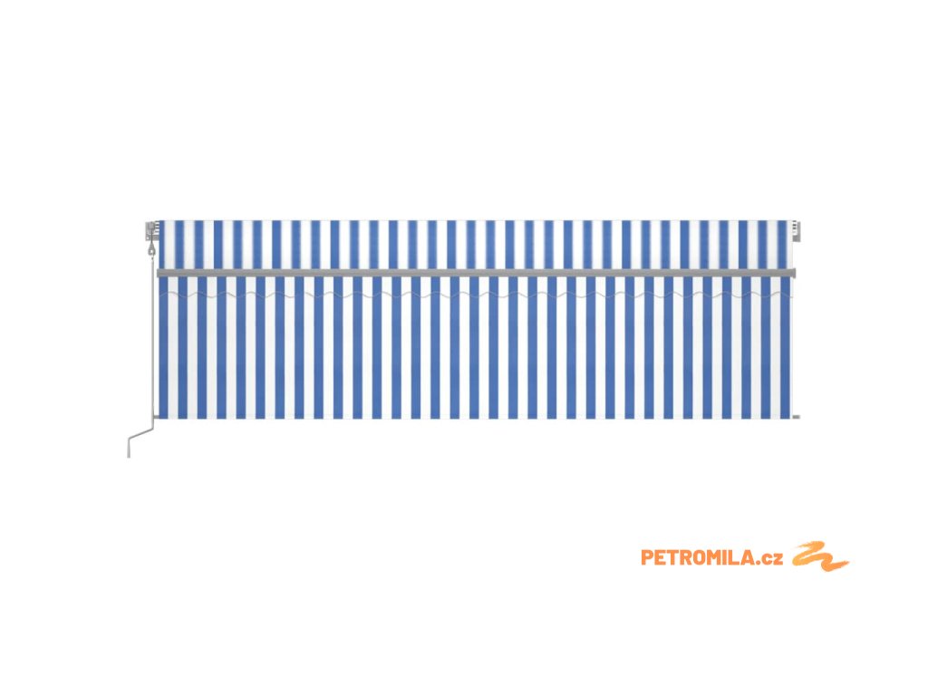 Automatická markýza roleta LED a senzor větru 5 x 3 m modrobílá