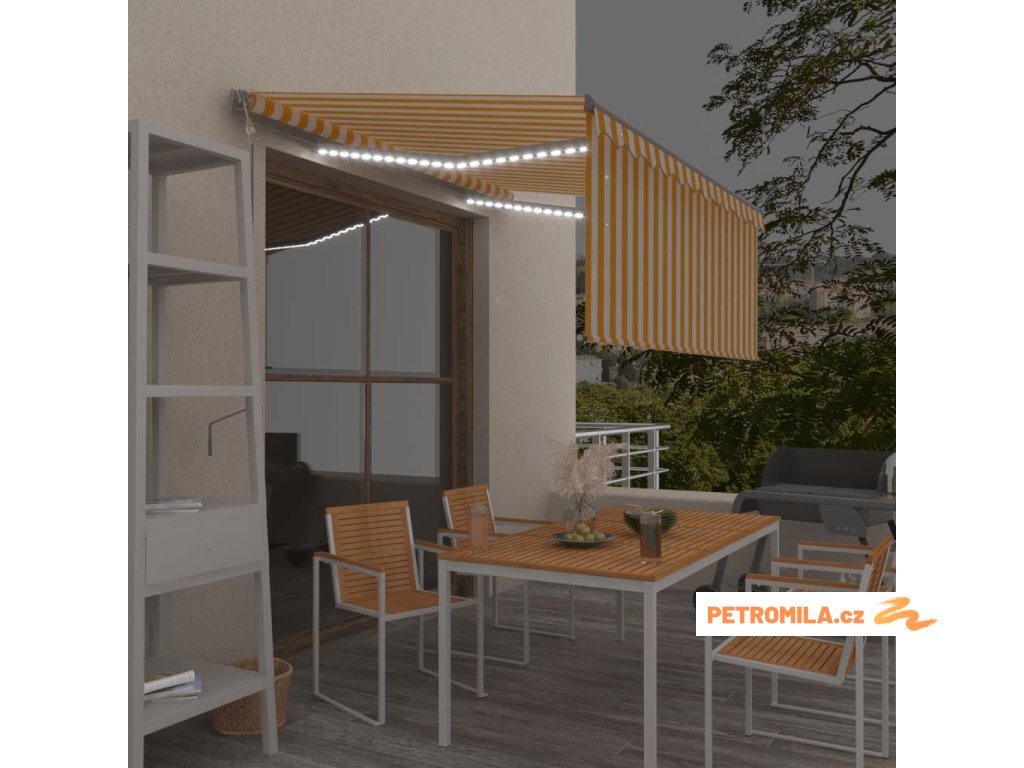 Automatická markýza roleta LED senzor větru 3,5x2,5 m žlutobílá