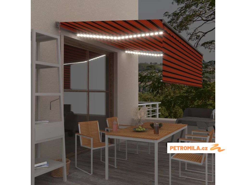 Automatická markýza roleta LED senzor větru 4x3 m oranžovohnědá