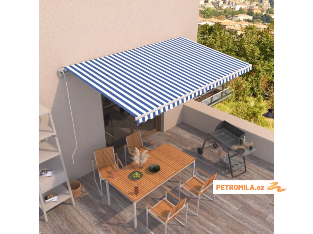 Automatická zatahovací markýza 500 x 350 cm modrobílá