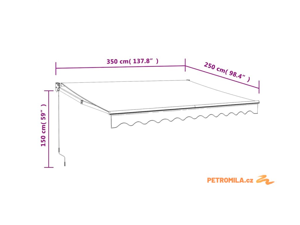 Automatická zatahovací markýza antracitová 3,5 x 2,5 m