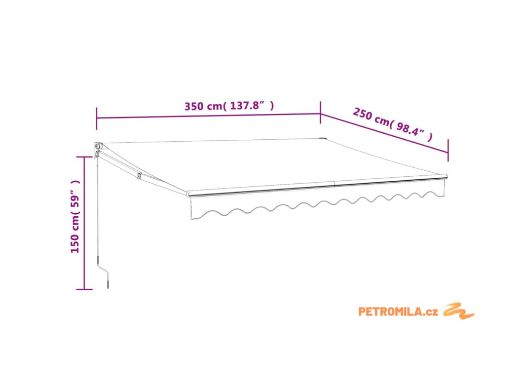 - Materiál markýzy: textil (100% polyester) s PU povlakem