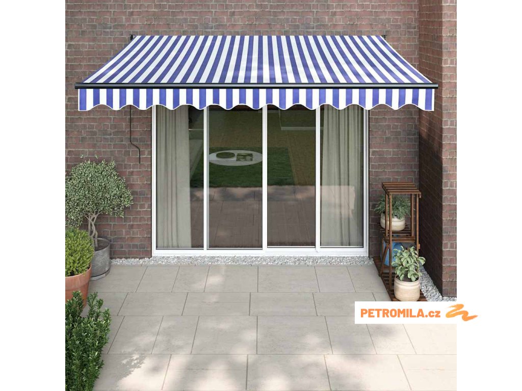 Automatická zatahovací markýza modrá a bílá 3,5 x 2,5 m