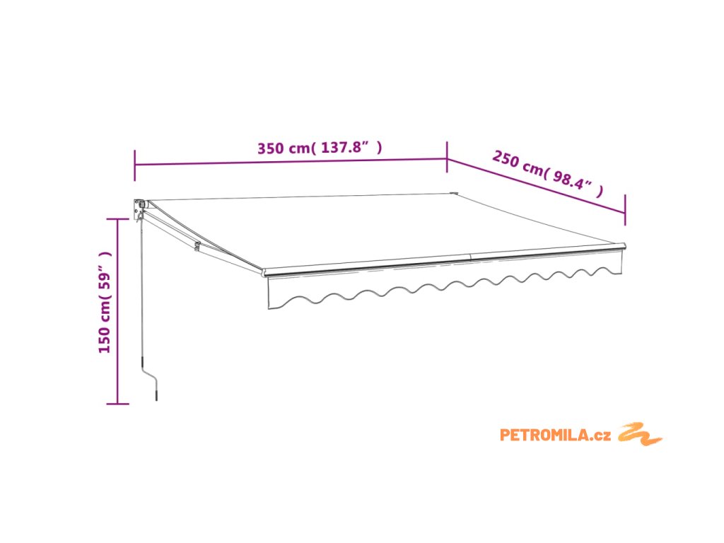 - Materiál markýzy: textil (100% polyester) s PU povlakem