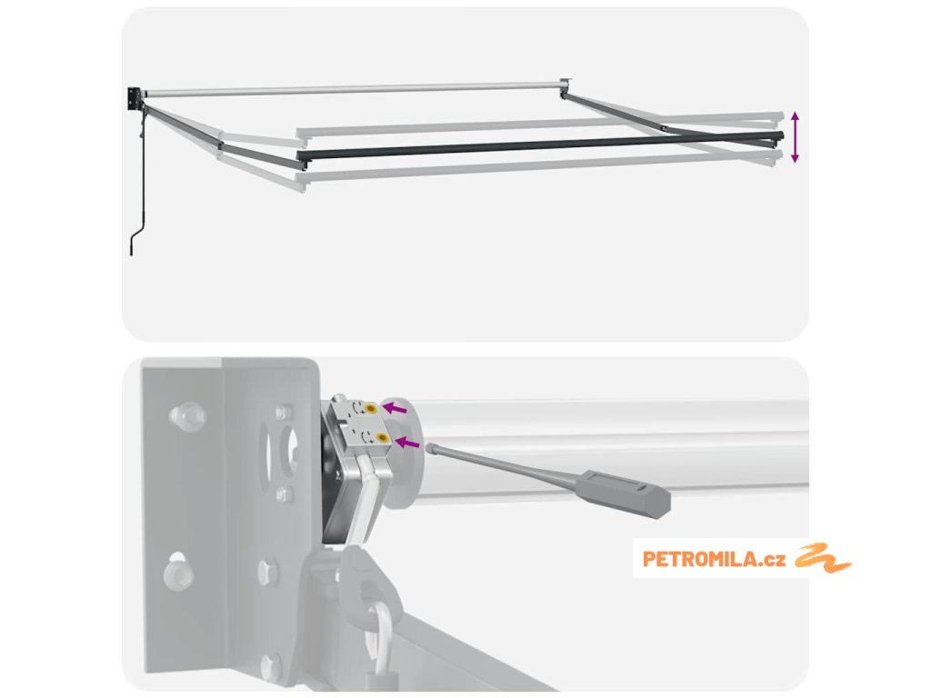 - Materiál markýzy: textil (100% polyester) s PU povlakem