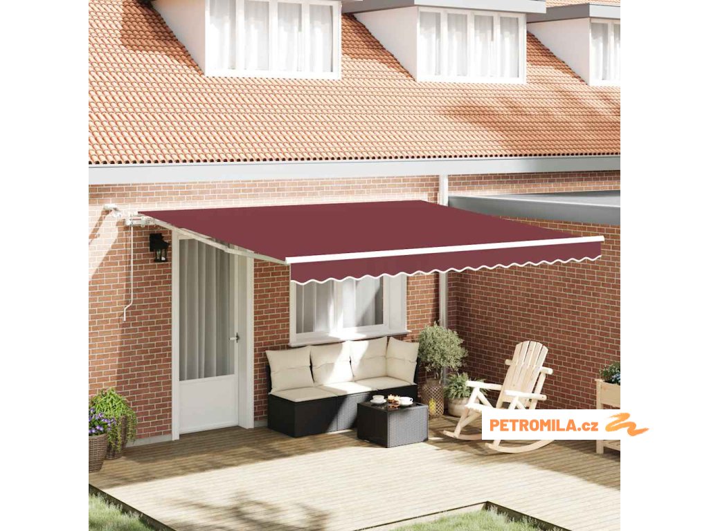 Automatická zatahovací markýza s LED burgundská 400 x 300 cm