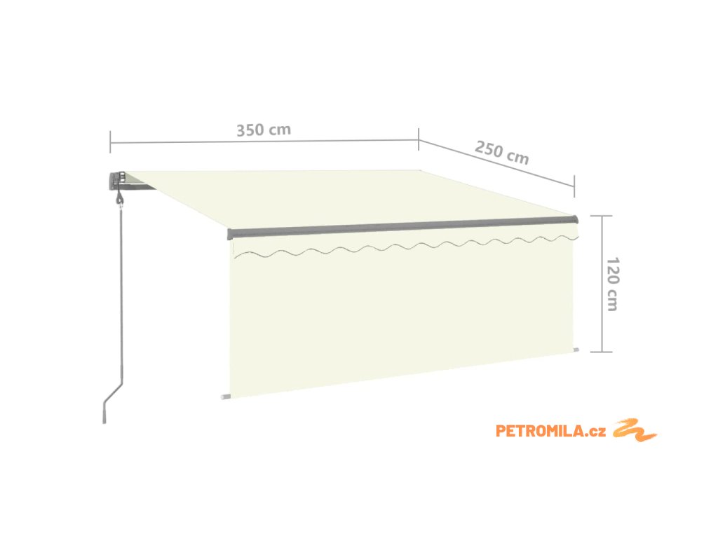 - Rozměry markýzy: 3,5 x 2,5 m (Š x V)