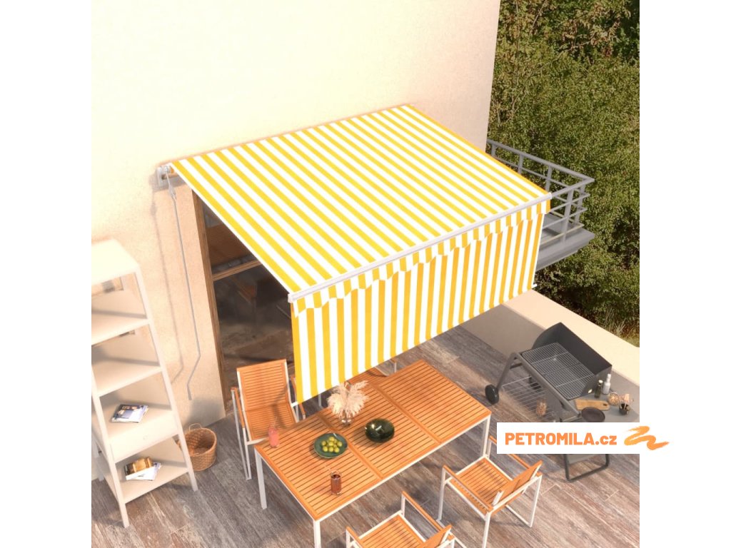Automatická zatahovací markýza s roletou 3,5 x 2,5 m žlutobílá
