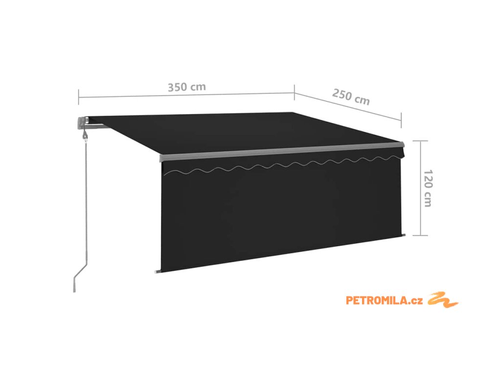 - Rozměry markýzy: 3,5 x 2,5 m (Š x V)