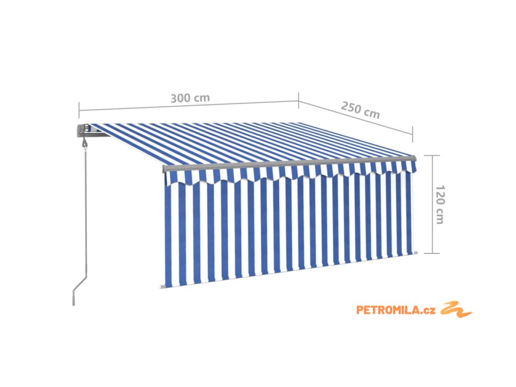 Automatická zatahovací markýza s roletou 3 x 2,5 m modrobílá