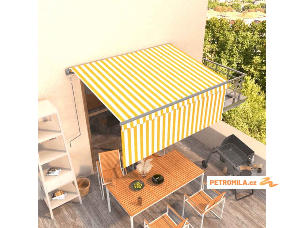 Automatická zatahovací markýza s roletou 3 x 2,5 m žlutobílá