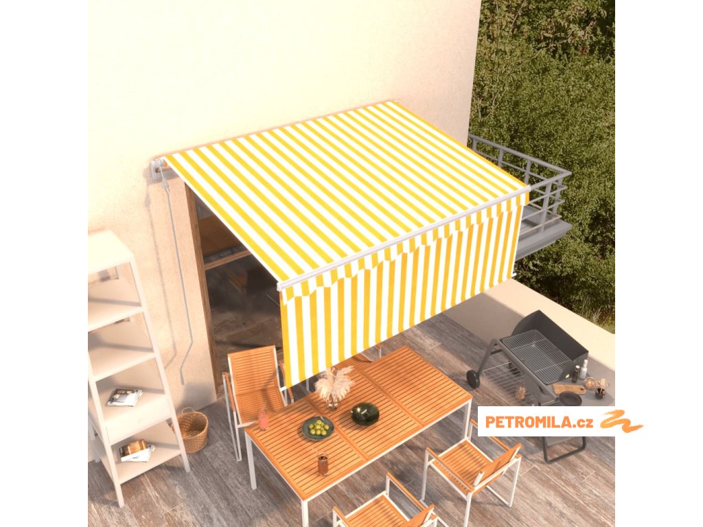 Automatická zatahovací markýza s roletou 3 x 2,5 m žlutobílá