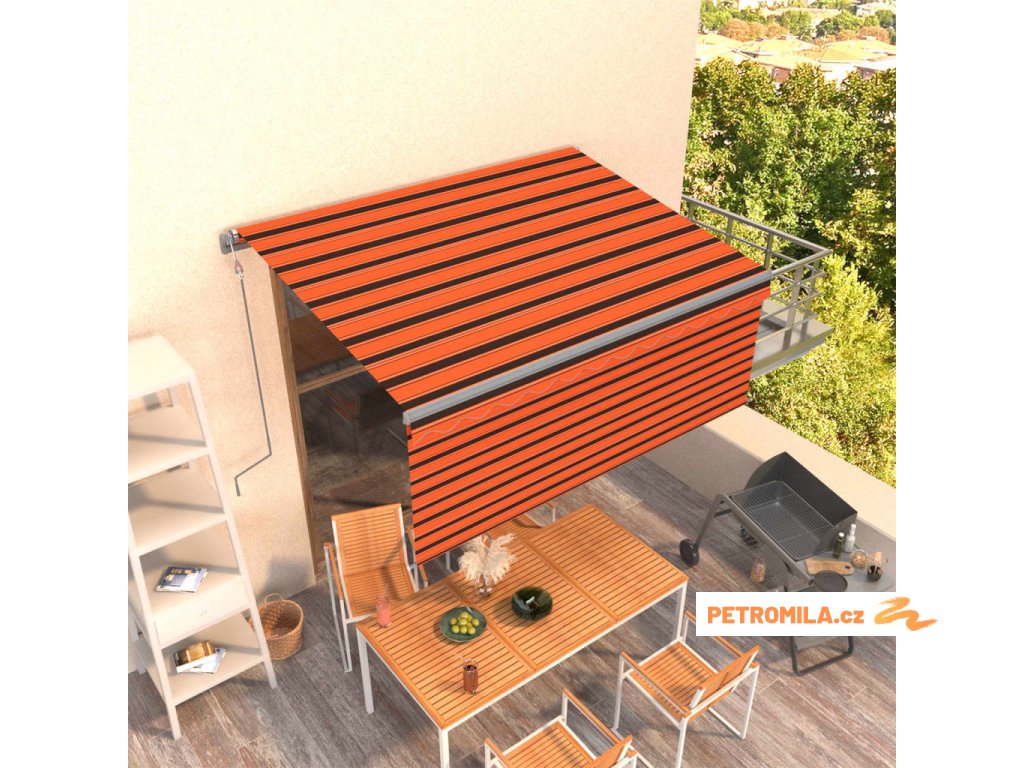 Automatická zatahovací markýza s roletou 3x2,5 m oranžovo-hnědá