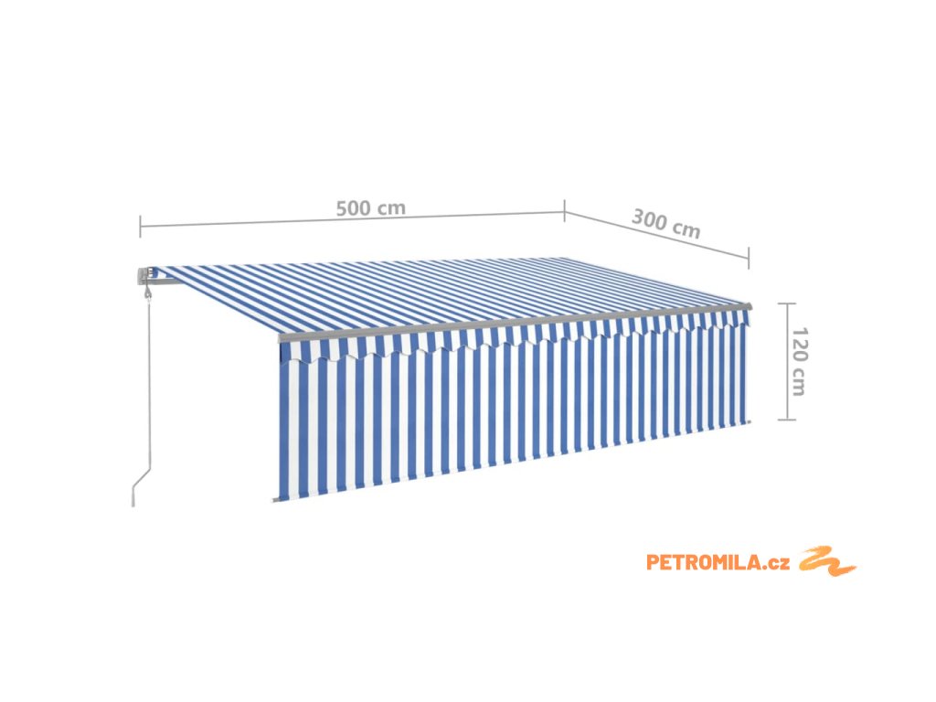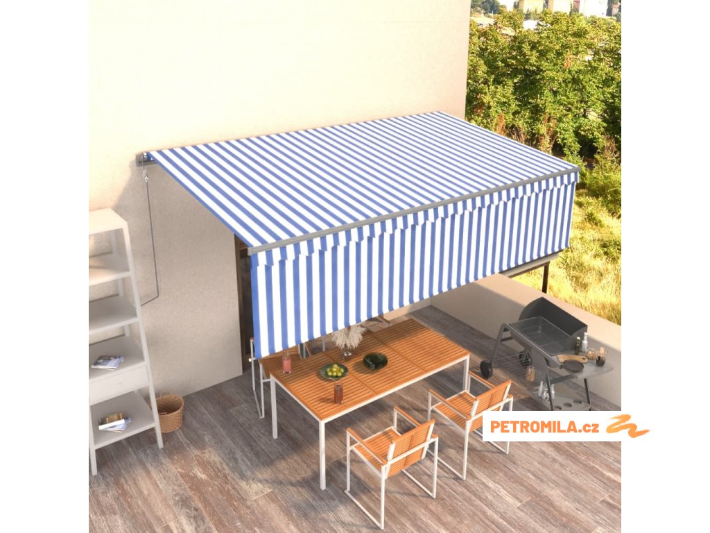 Automatická zatahovací markýza s roletou 5 x 3 m modrobílá