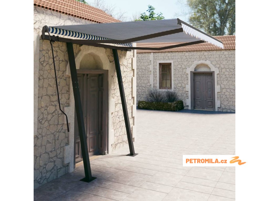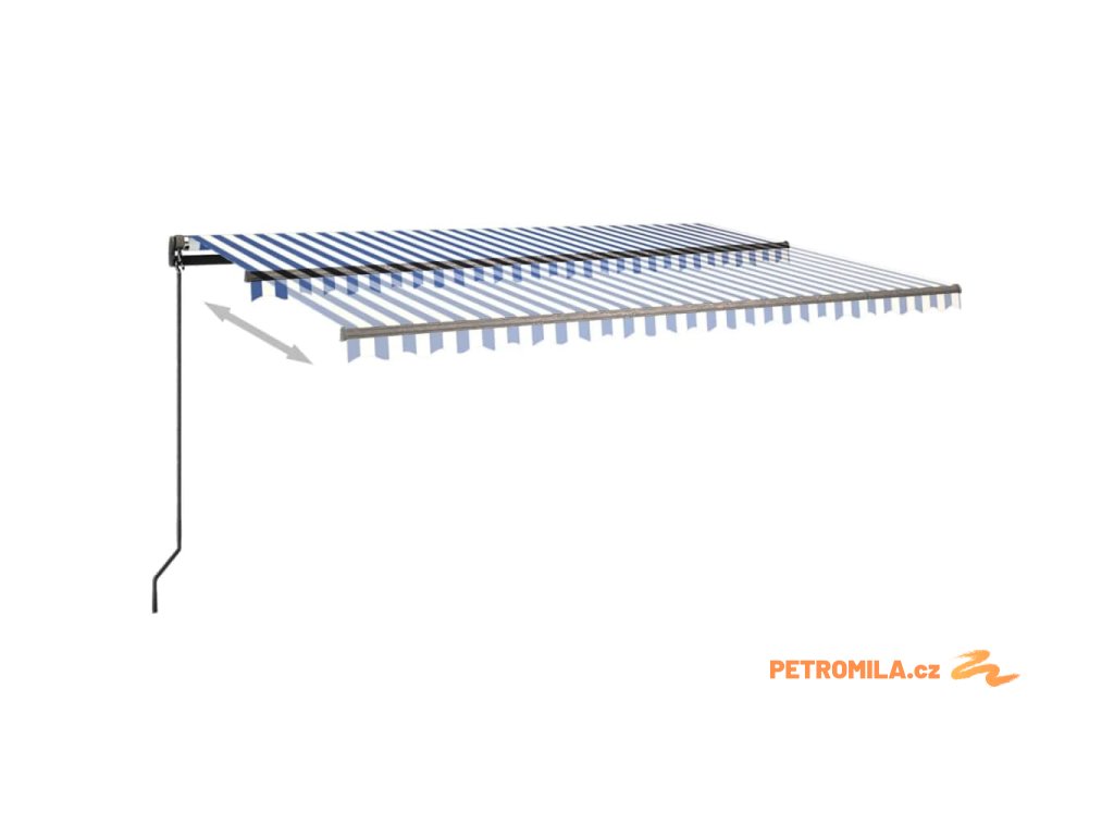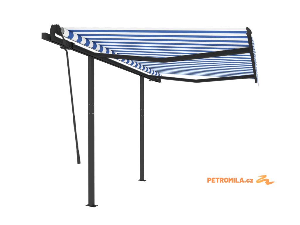 Automatická zatahovací markýza se sloupky 3,5 x 2,5 m modrobílá