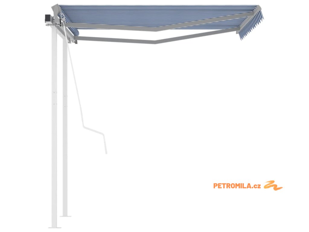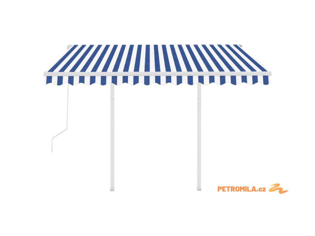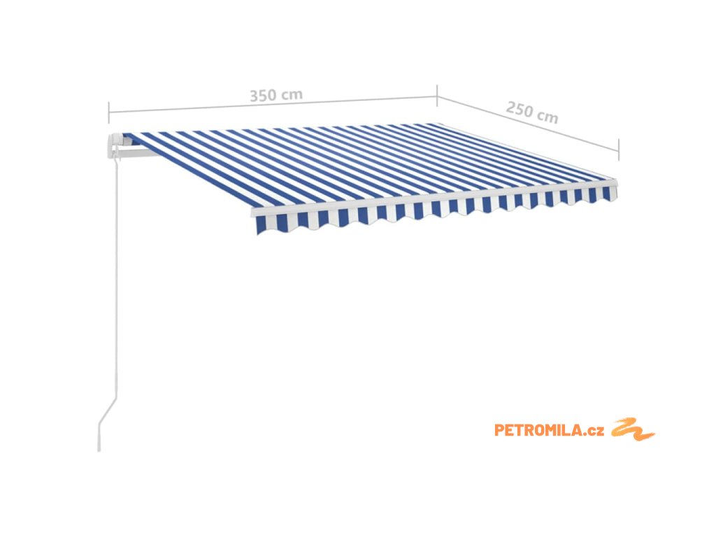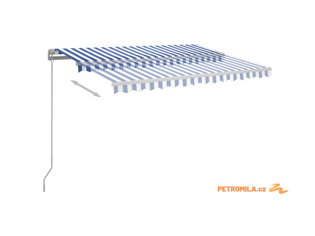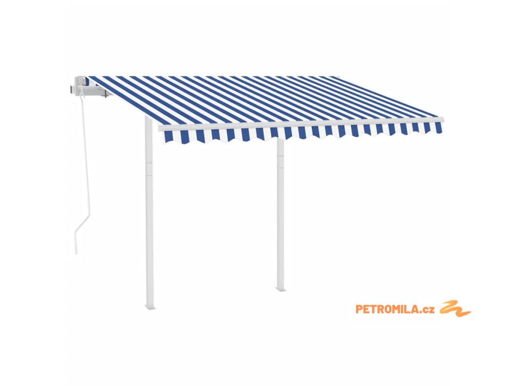 Automatická zatahovací markýza se sloupky 3,5 x 2,5 m modrobílá