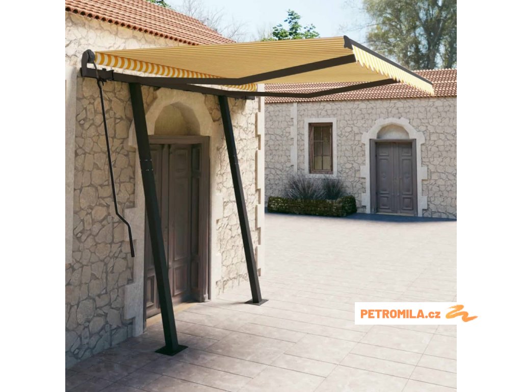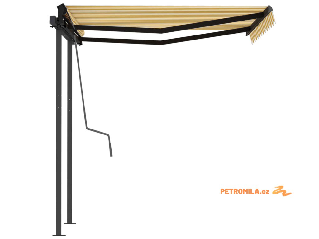 Automatická zatahovací markýza se sloupky 3,5 x 2,5 m žlutobílá
