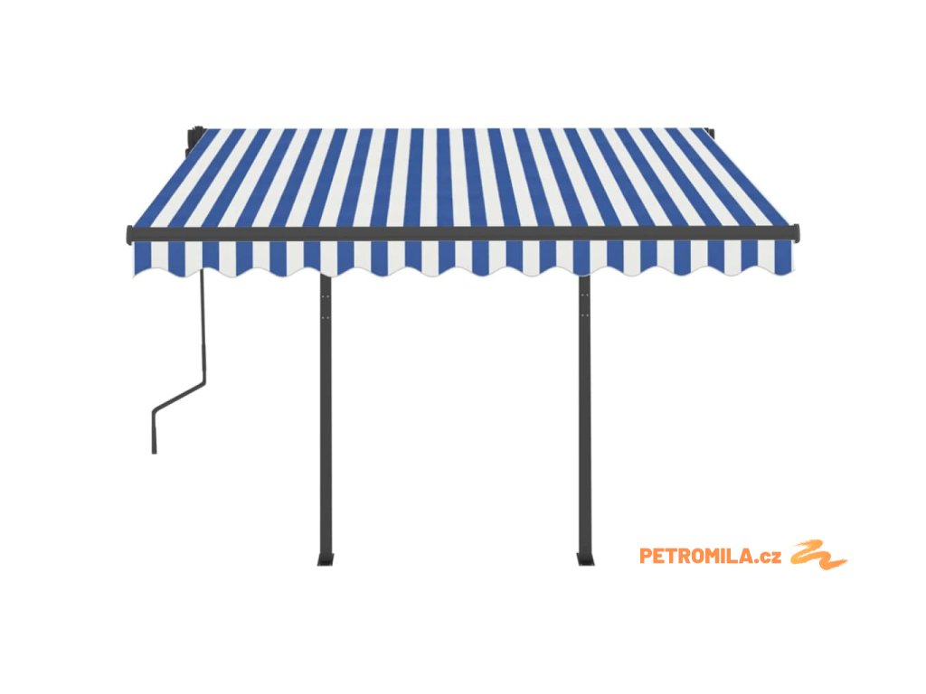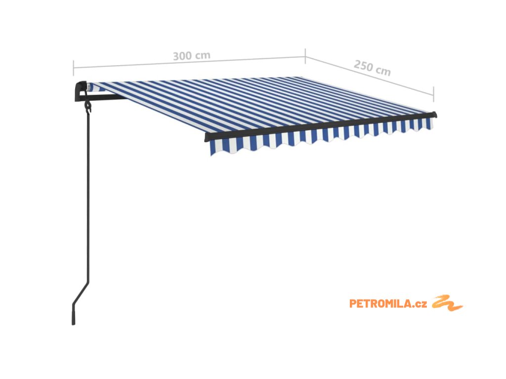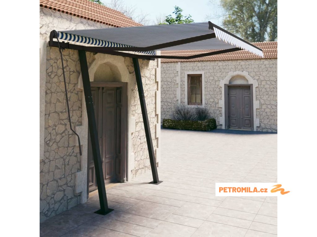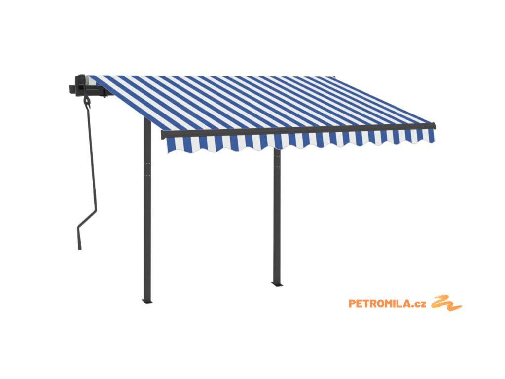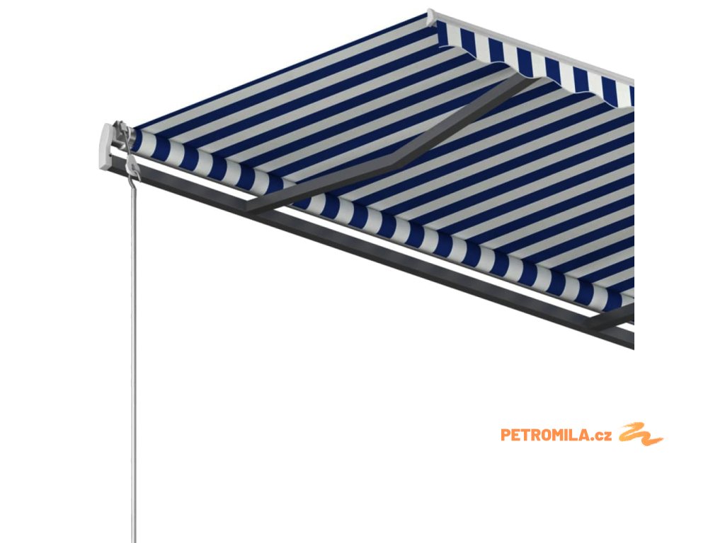 Automatická zatahovací markýza se sloupky 3 x 2,5 m modrobílá