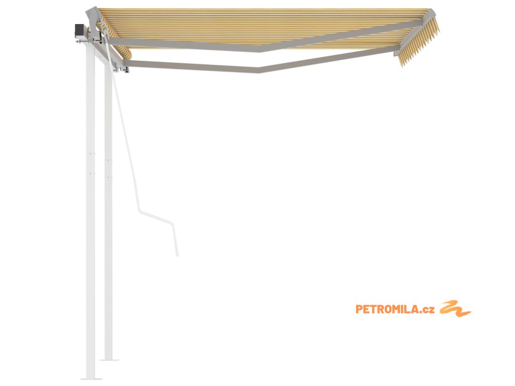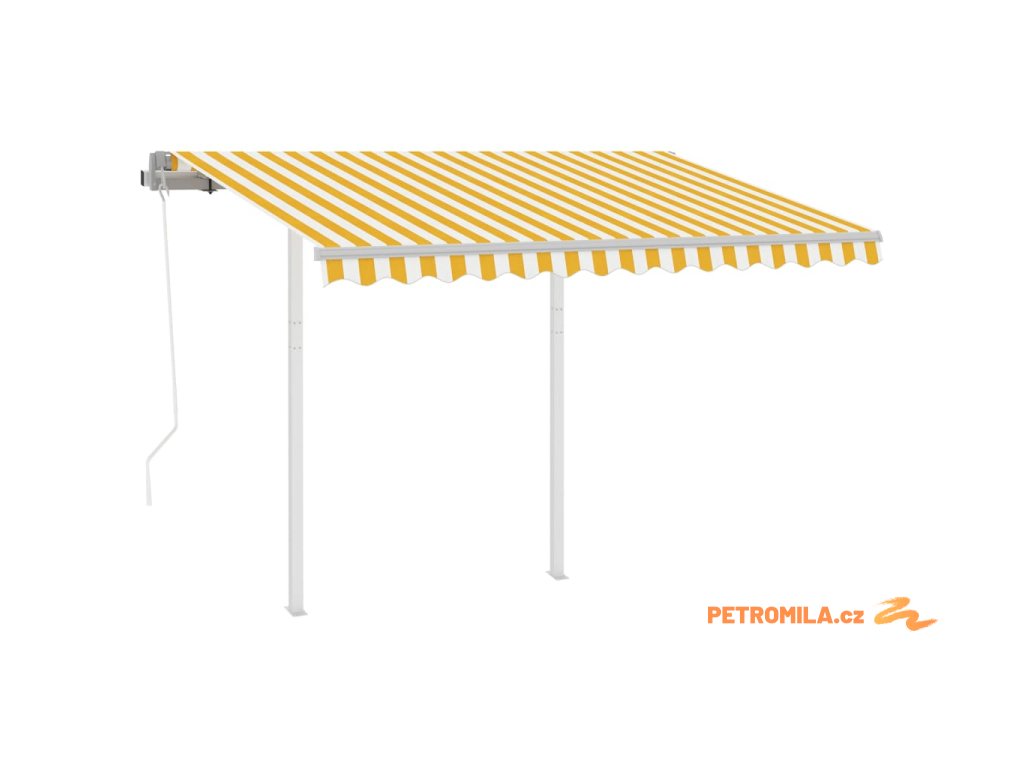 Automatická zatahovací markýza se sloupky 3 x 2,5 m žlutobílá