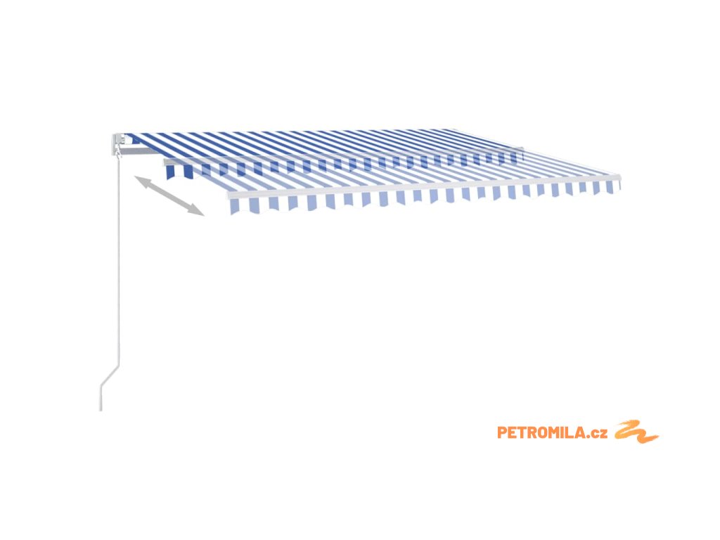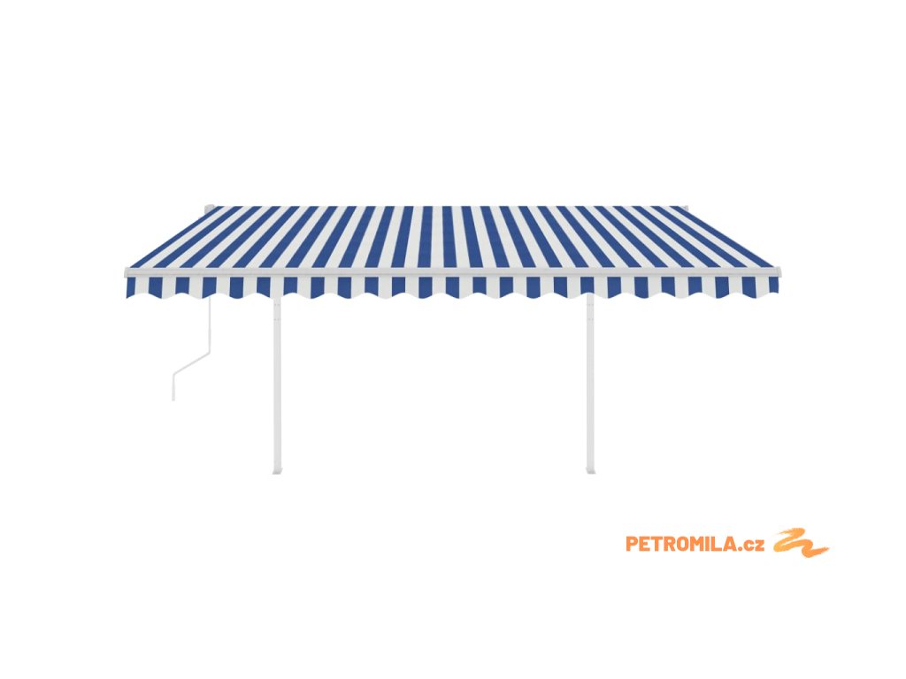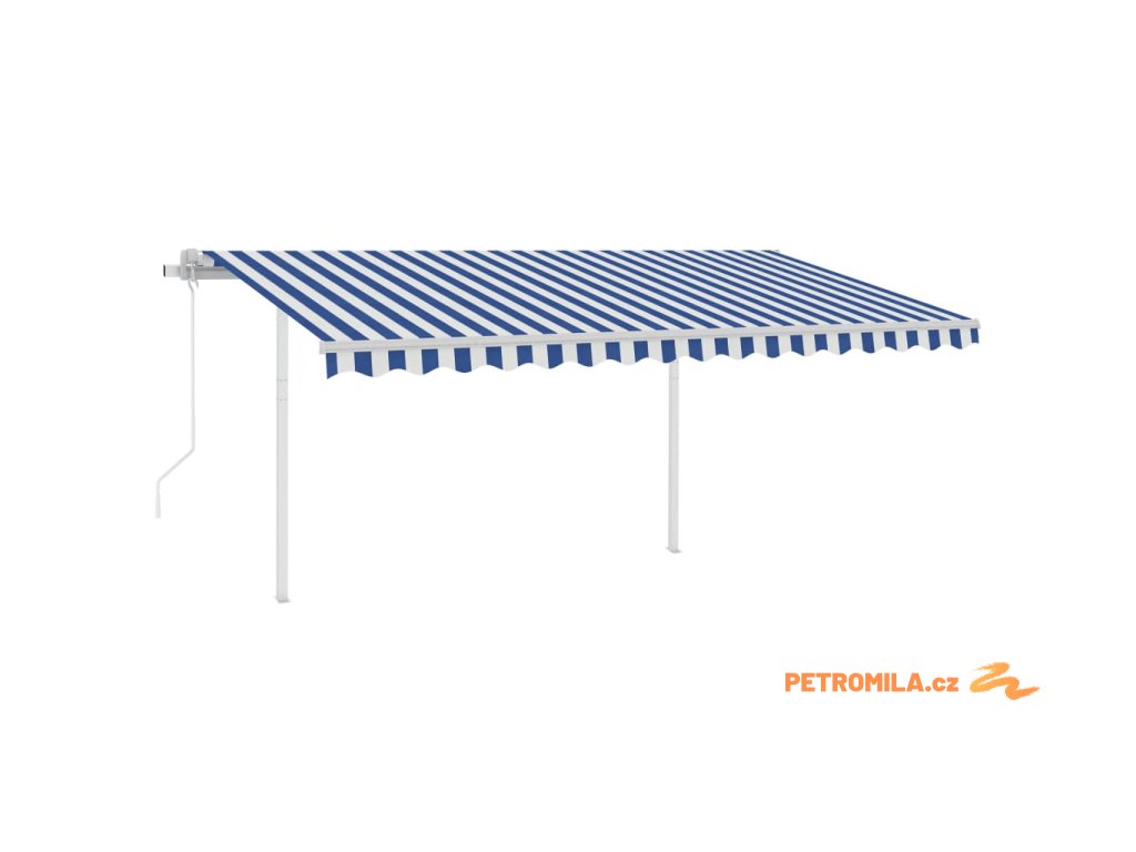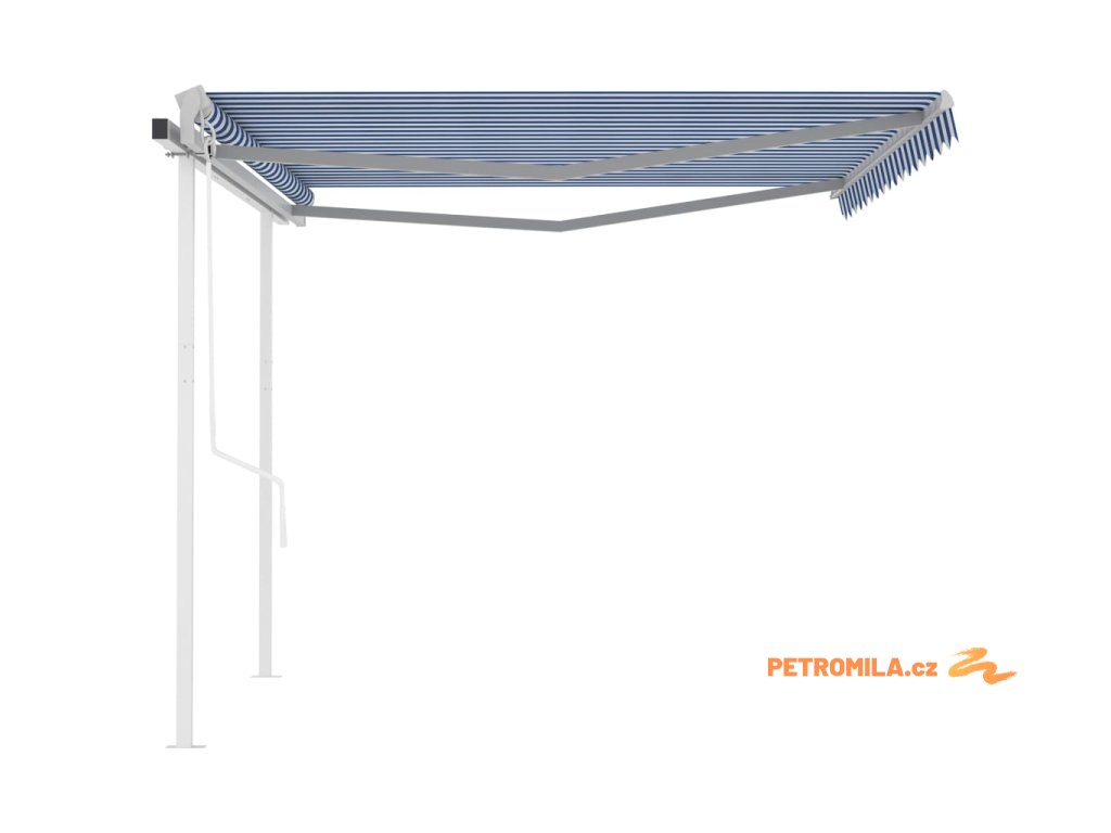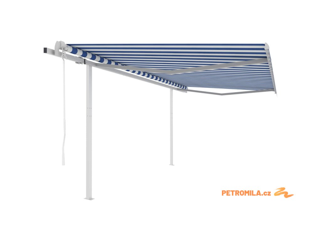 Automatická zatahovací markýza se sloupky 4 x 3,5 m modrobílá