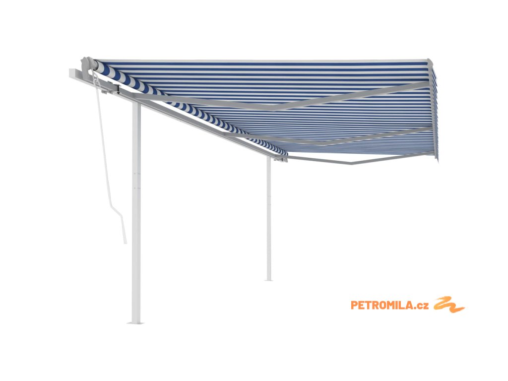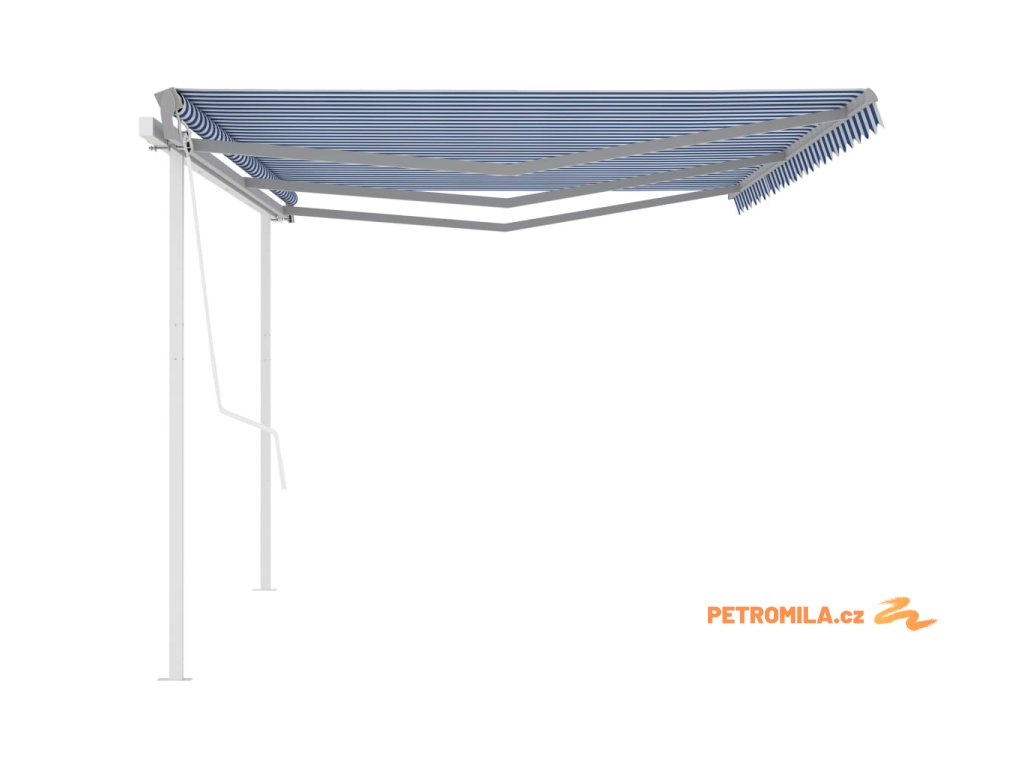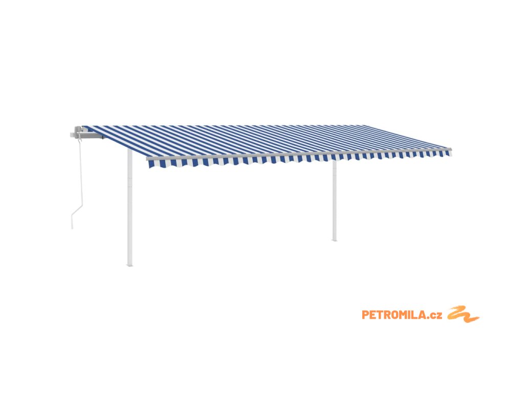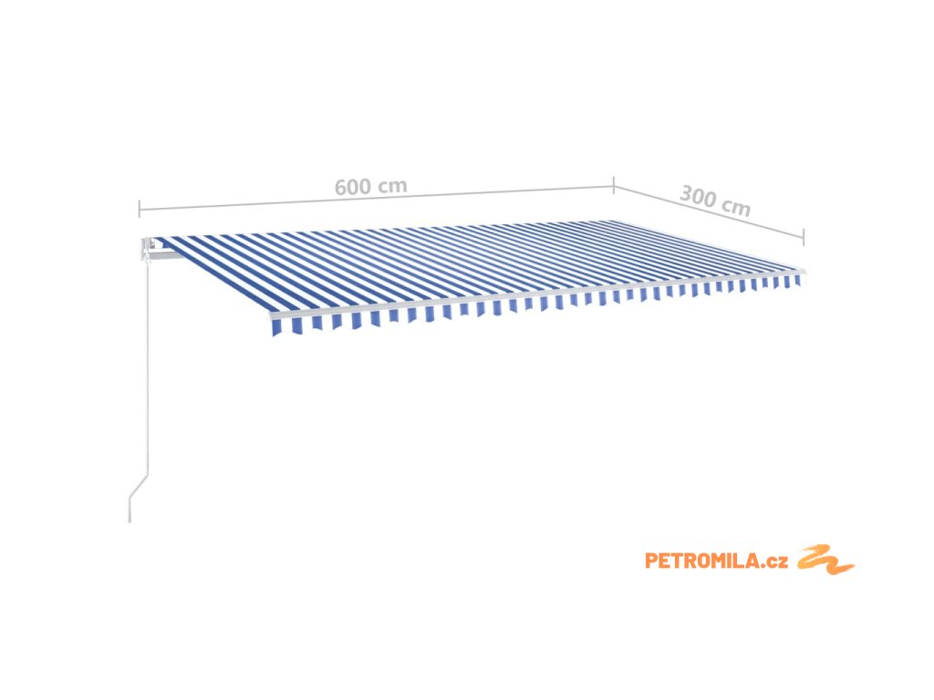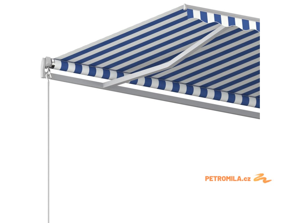 Automatická zatahovací markýza se sloupky 6 x 3 m modrobílá