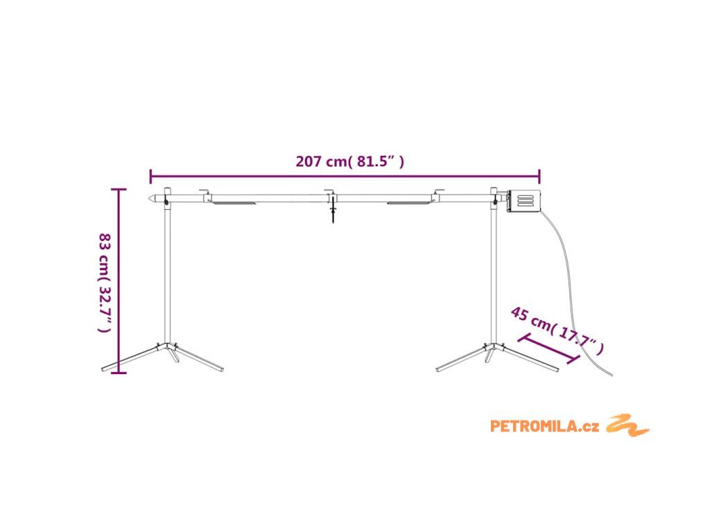 - Rozměry: 207 x 45 x 83 cm (D x Š x V)