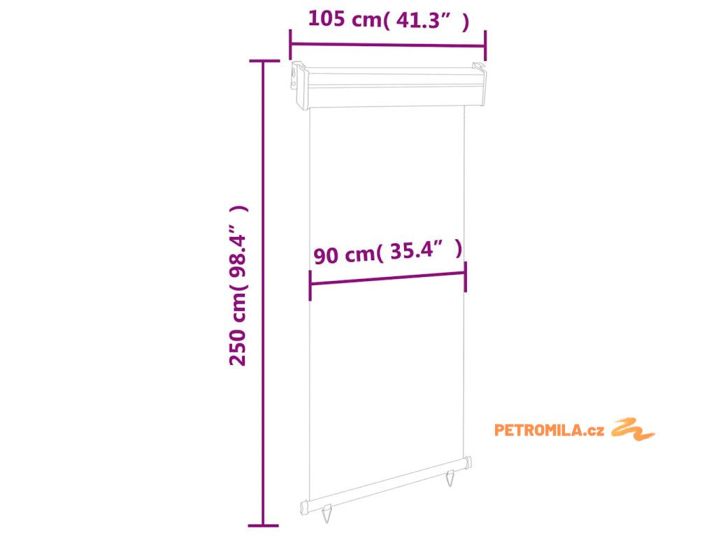 Zástěna je vyrobená z polyesteru, který je odolný jak vůči UV záření, tak proti roztržení. Hliníková rolna zajišťuje hladké vysouvání. Má samosvornou funkci, takže ji můžete zastavit na jakémkoli místě. Délku lze nastavit až do 250 cm. Boční markýza se dá automaticky stáhnout zpět do ocelové kazety pouhým zatažením za spodní trojúhelníkové kroužky. Navíc umožňuje flexibilní upevnění buď na stěnu, nebo na strop podle konkrétních potřeb.