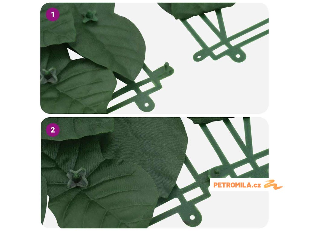 Zástěna se zelenými listy je dokonalým dekorativním a funkčním doplňkem do vašeho venkovního prostoru. Ochranná clona je vyrobená z polyethylenu a látky, je odolná a vyžaduje minimální údržbu. Blokuje silné sluneční světlo, chrání vaše soukromí a přitom nebrání cirkulaci vzduchu.