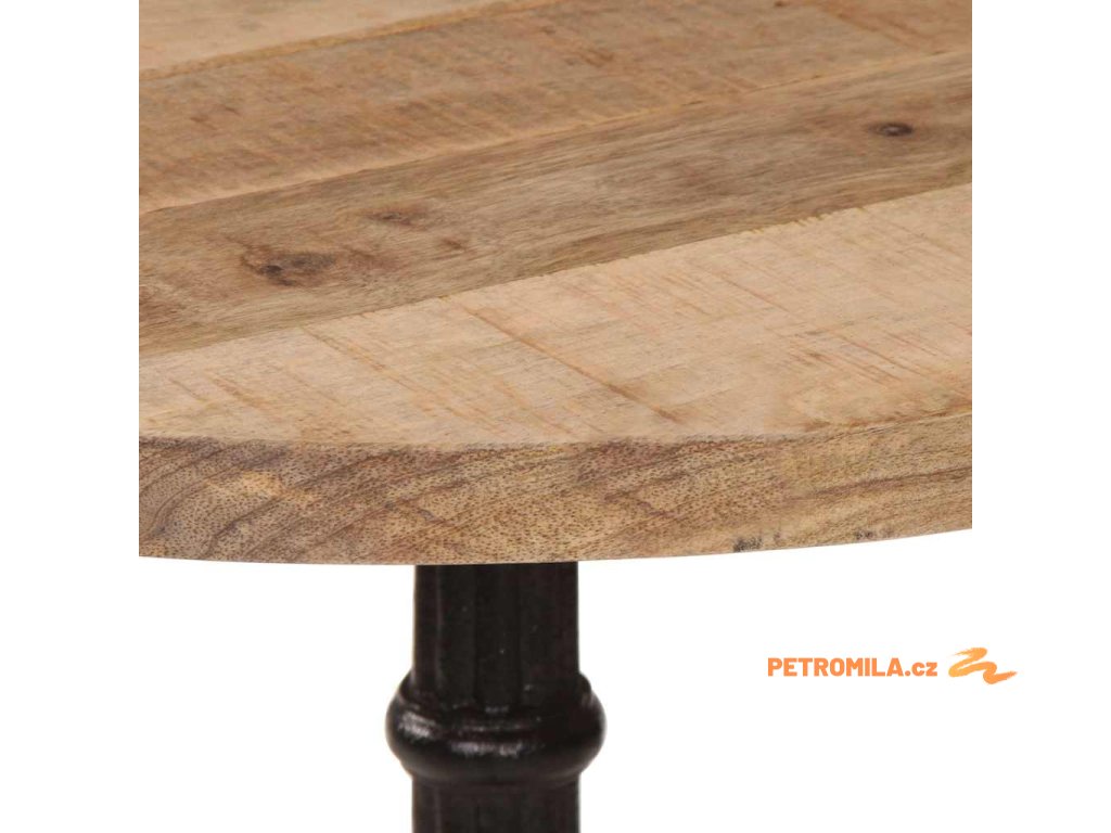 Stolní deska je vyrobená z hrubého mangovníkového dřeva s přírodním povrchem. Jedná se o tropické tvrdé dřevo, které dokáže unést značnou váhu. Skvěle také odolává opotřebení a působení času, takže je stabilní a dlouho vydrží. Litinová základna zajišťuje výtečnou rovnováhu a pevnost. Tento jídelní stůl vám rovněž poslouží k odkládání nápojů či jiných věcí, které chcete mít vždy po ruce.
